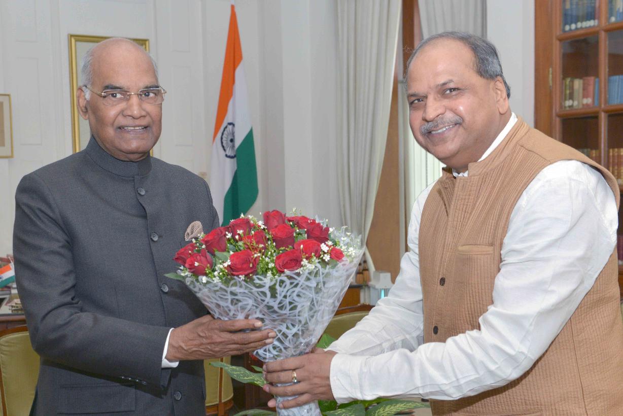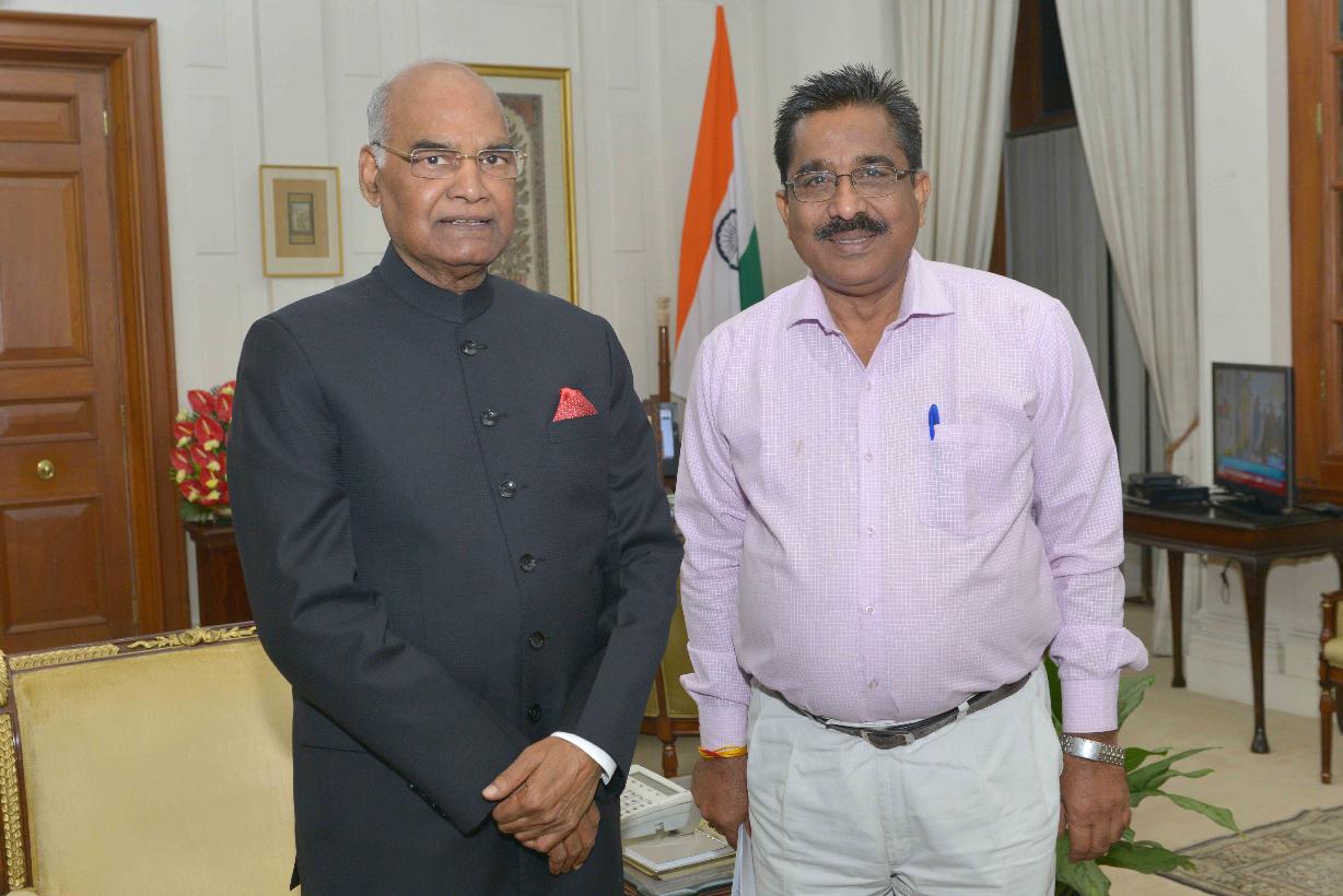 Shri Ashutosh Dayal Sharma son of late Dr. Shankar Dayal Sharma, former President of India meeting with the President of India, Shri Ram Nath Kovind, at Rashtrapati Bhavan on November 17, 2017.