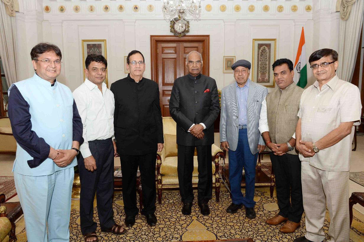 Shri Sitaram Pareek, National President Bharat Vikas Parishad (RSS Wing) with others meeting with the President of India, Shri Ram Nath Kovind, at Rashtrapati Bhavan on November 14, 2017.