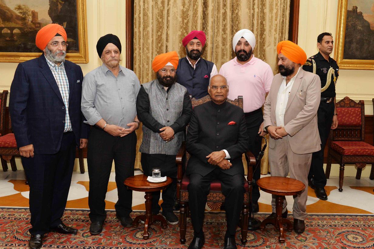 Shri Balbir Singh, President with others from Indian National Forum Karol Bagh meeting with the President of India, Shri Ram Nath Kovind, on the occasion of Guru Nanak's Birthday, at Rashtrapati Bhavan on November 04, 2017.