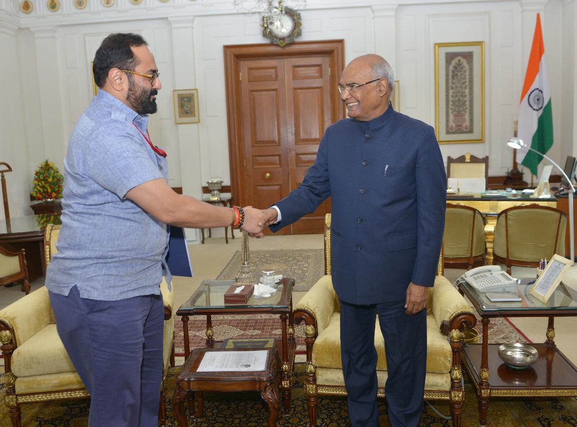Shri Rajeev Chandrasekhar, MP (RS) calling on the President of India, Shri Ram Nath Kovind, at Rashtrapati Bhavan on August 01, 2017.