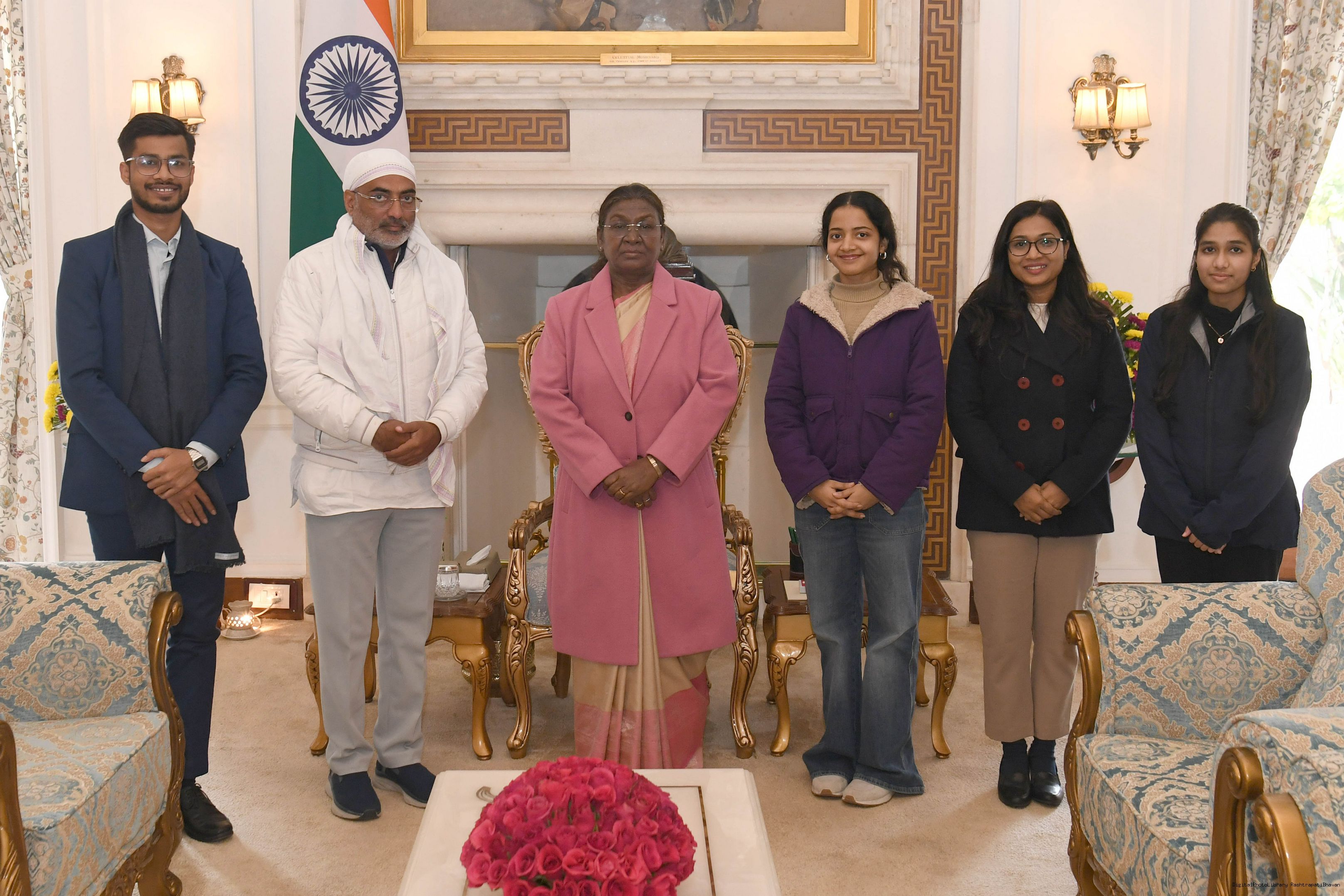 Shri Ramesh Kumar Agrawalla along with others meeting with the President of India Smt. Droupadi Murmu at Rashtrapati Bhavan on December 27, 2024.