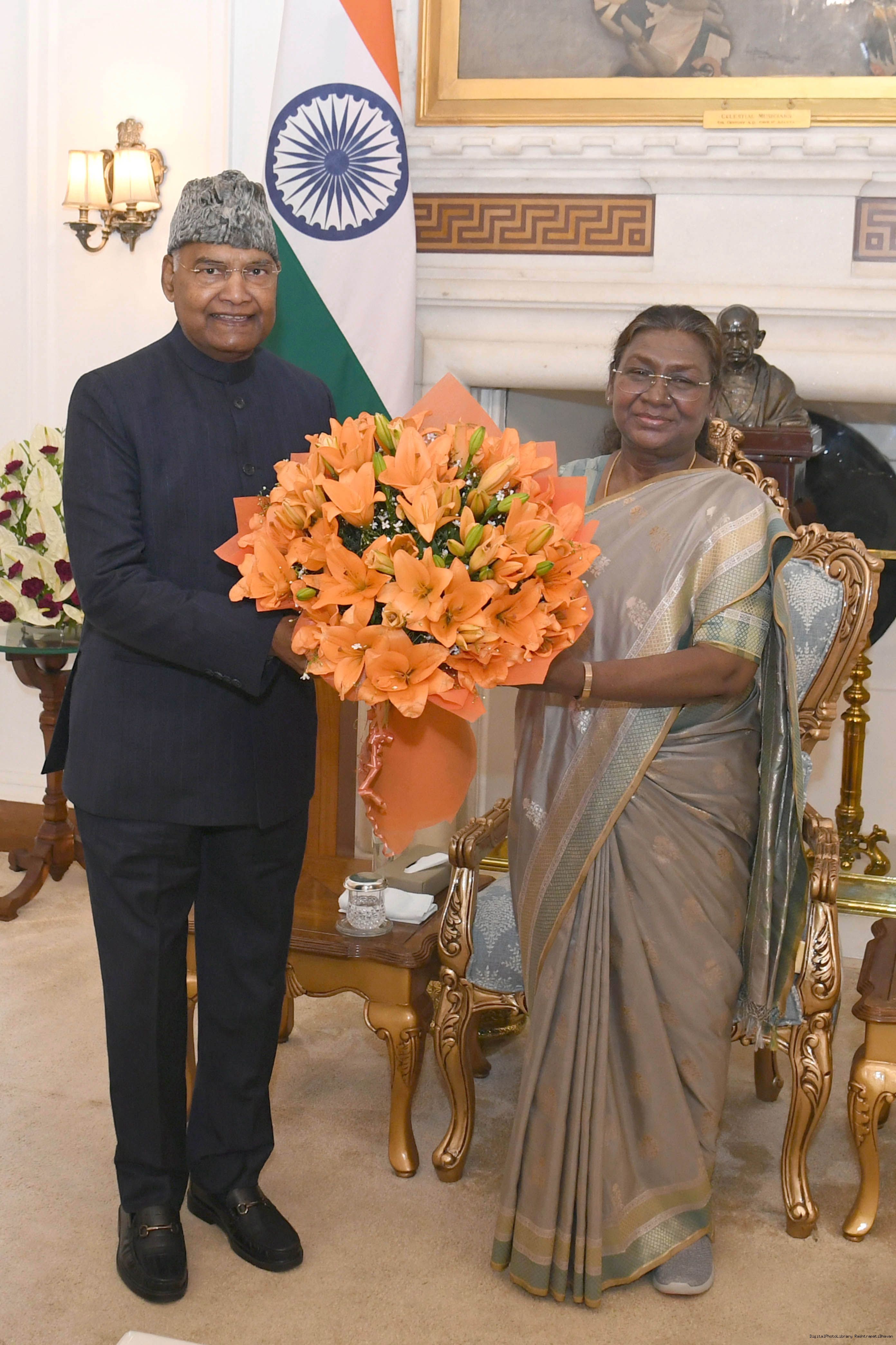 Shri Ram Nath Kovind, former President of India called on the President of India Smt. Droupadi Murmu at Rashtrapati Bhavan on January 7, 2025.
