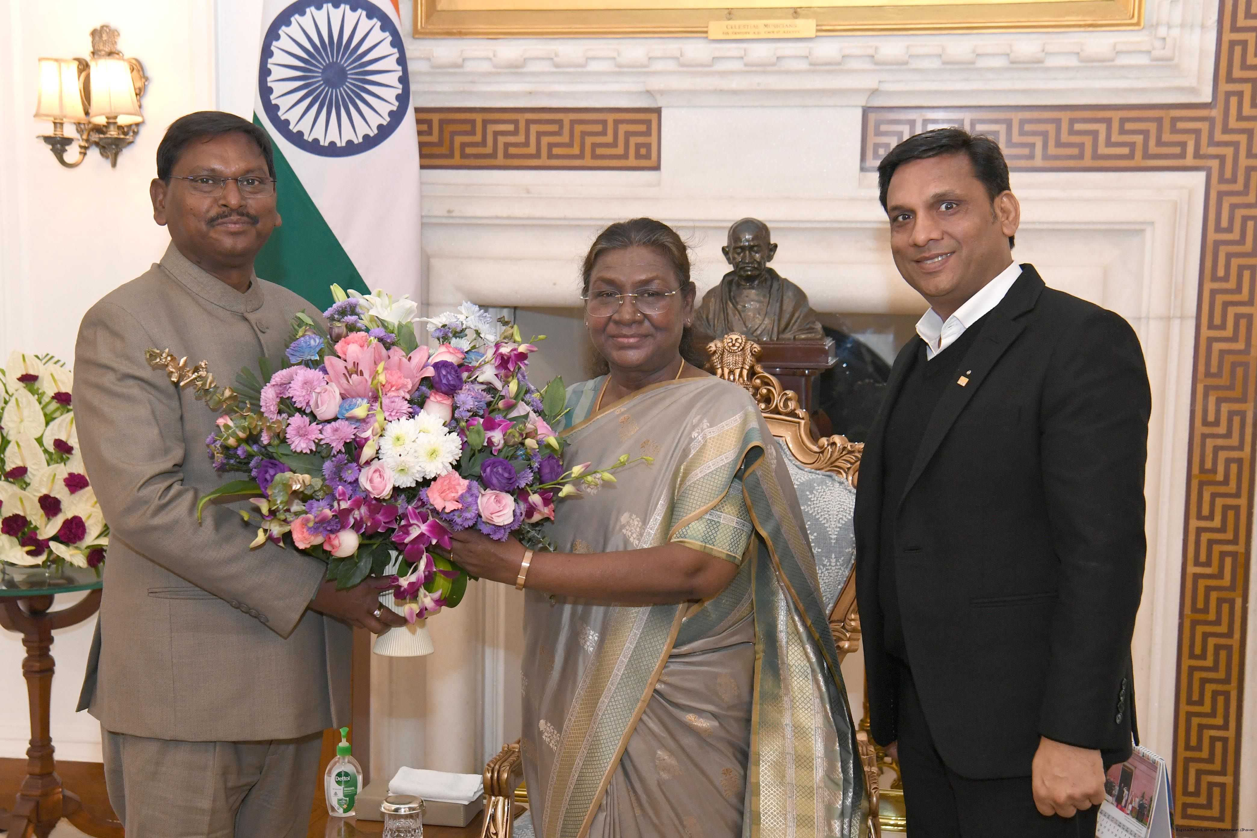 Shri Sourav Pattnaik along with others meeting with the President of India Smt. Droupadi Murmu at Rashtrapati Bhavan on December 27, 2024.