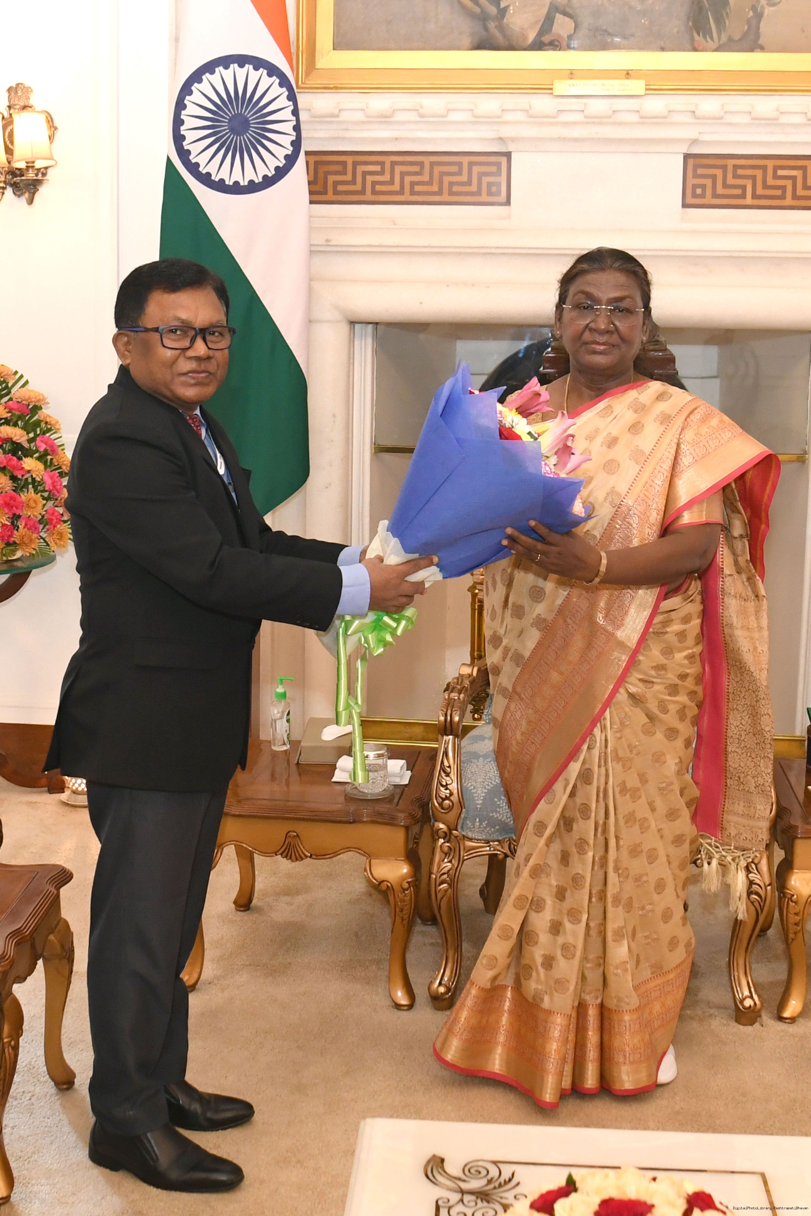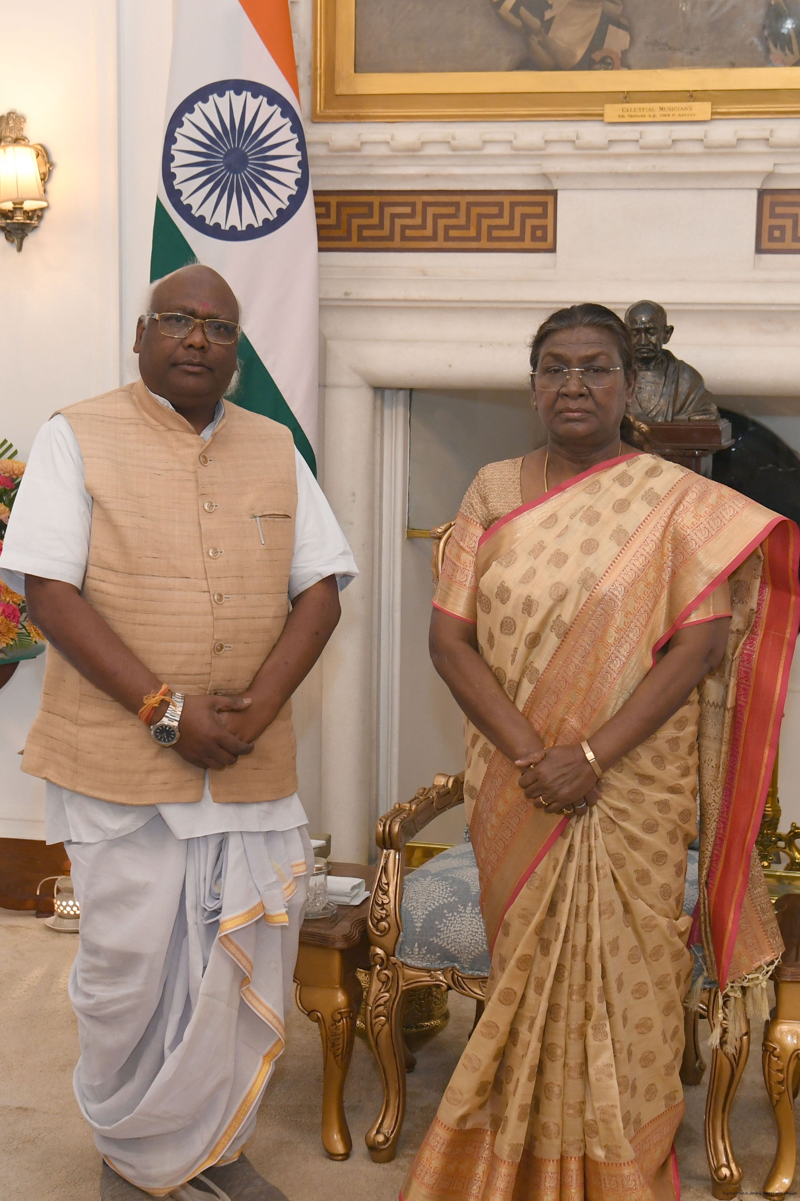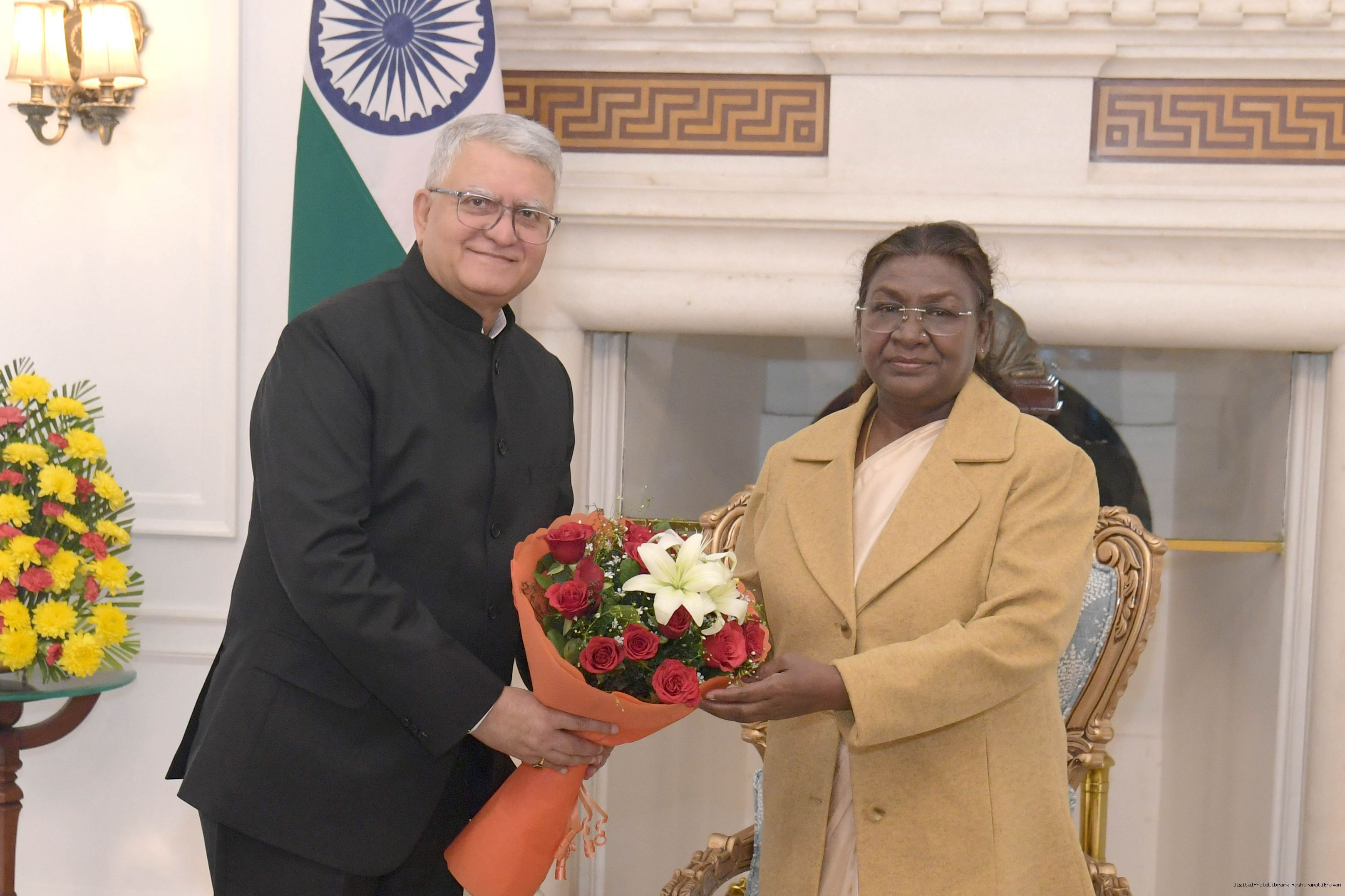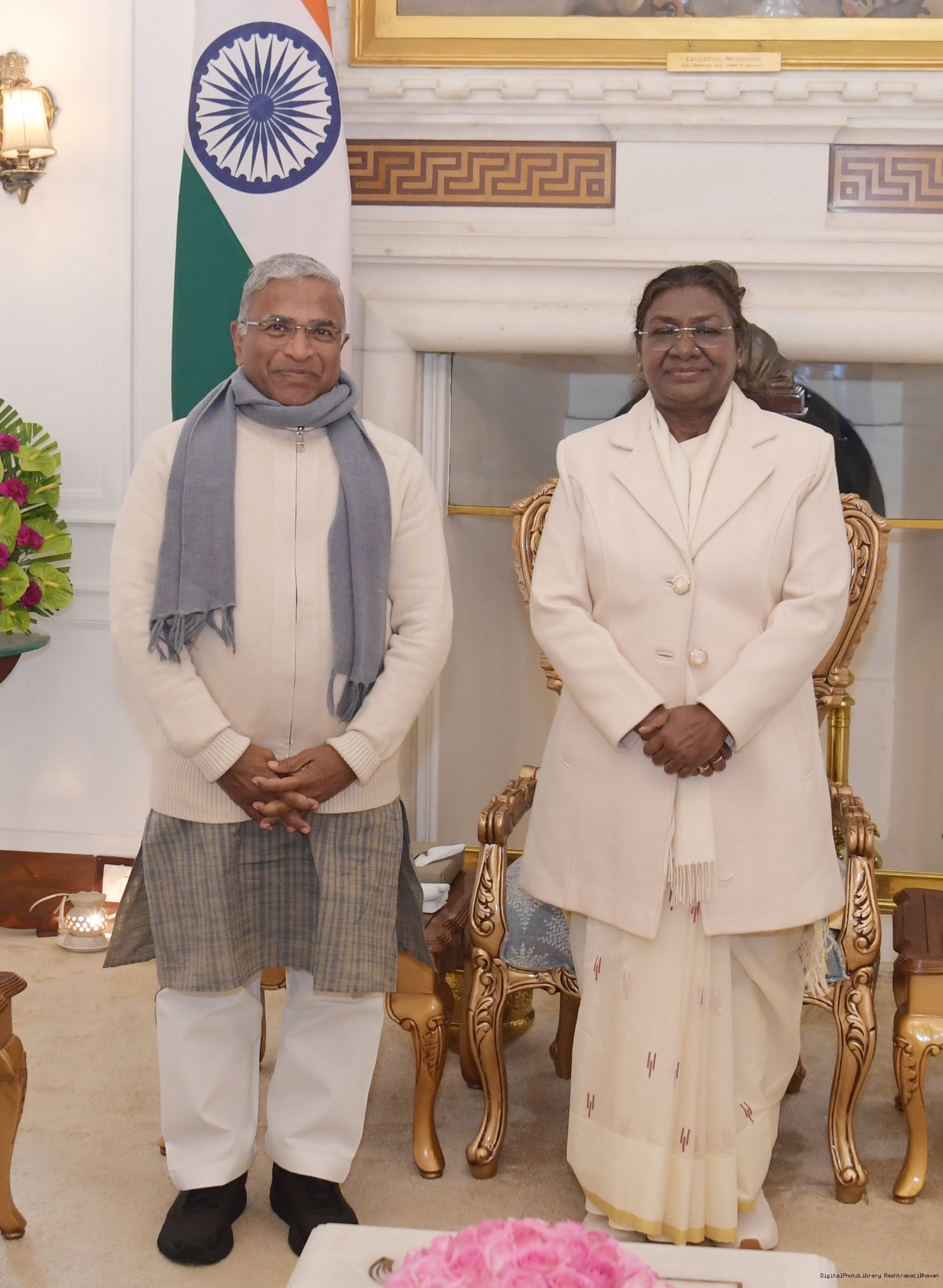 Shri Justice Chakradhari Sharan Singh, Chief Justice of Orissa High Court meeting with the President of India Smt. Droupadi Murmu at Rashtrapati Bhavan on December 26, 2024.