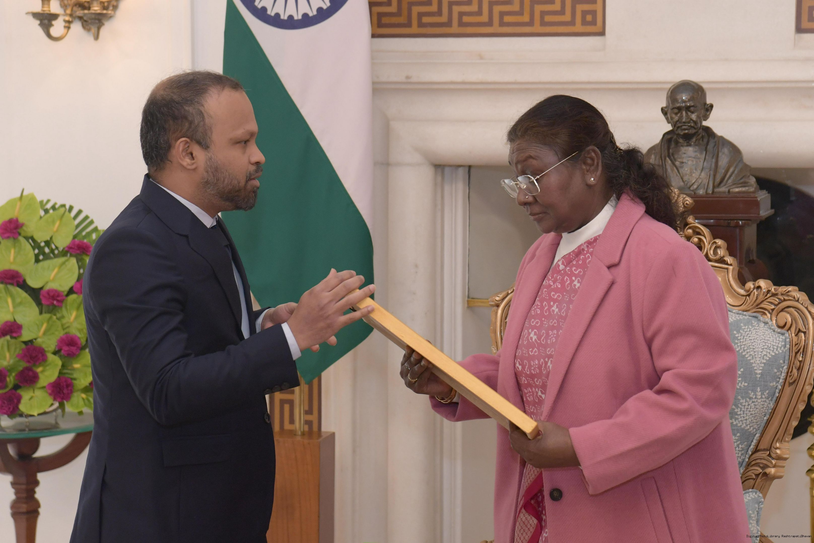 Shri Shankar Murmu, DGM, SBI meeting with the President of India Smt. Droupadi Murmu at Rashtrapati Bhavan on January 8, 2025.