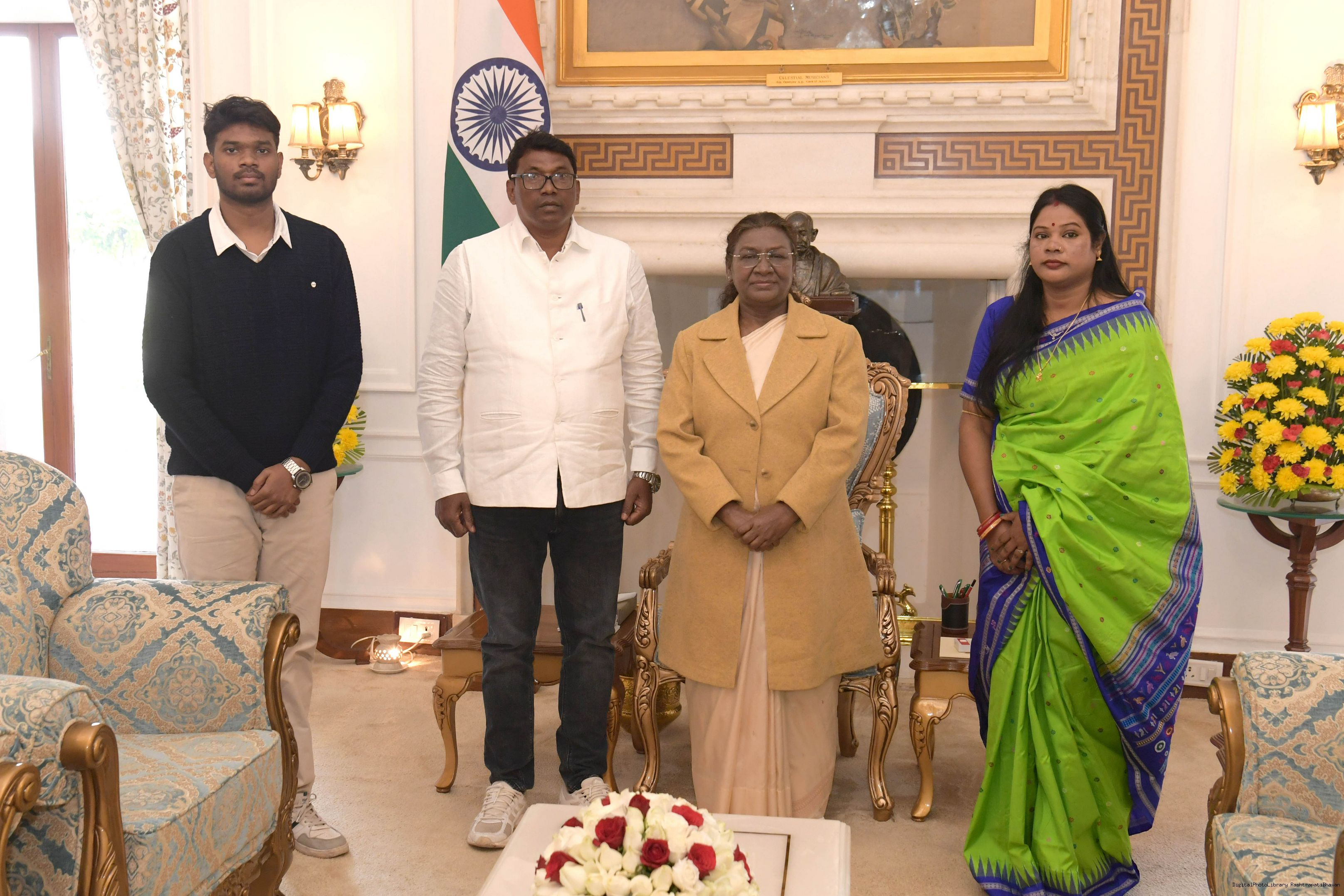 Shri Naba Charan Majhi, MP (Lok Sabha) from Mayurbhanj, Odisha along with others meeting with the President of India Smt. Droupadi Murmu at Rashtrapati Bhavan on December 23, 2024.