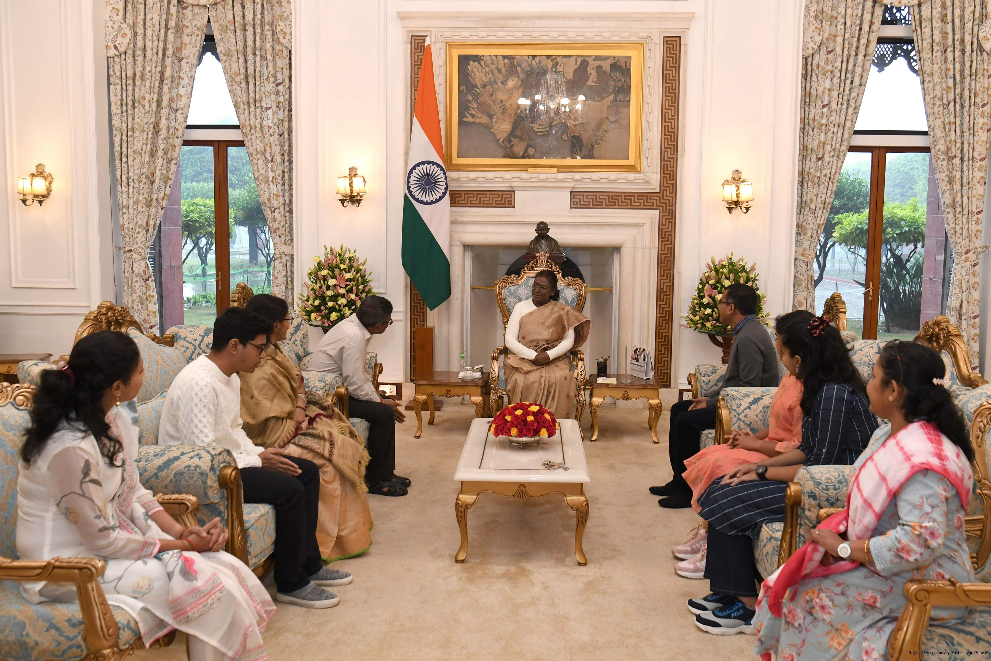 Smt. Sumanta Naik along with others meeting with the President of India Smt. Droupadi Murmu at Rashtrapati Bhavan on December 26, 2024.