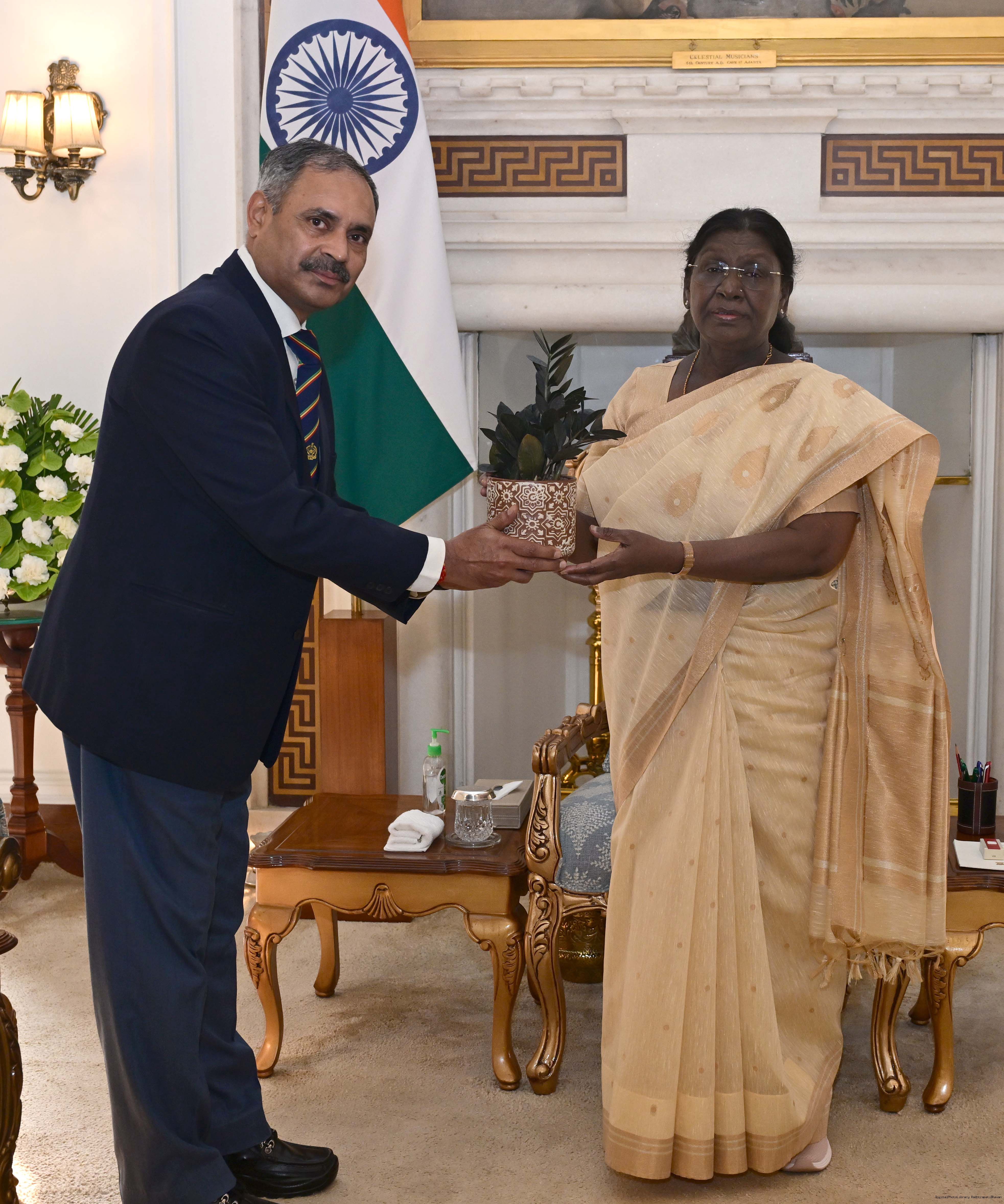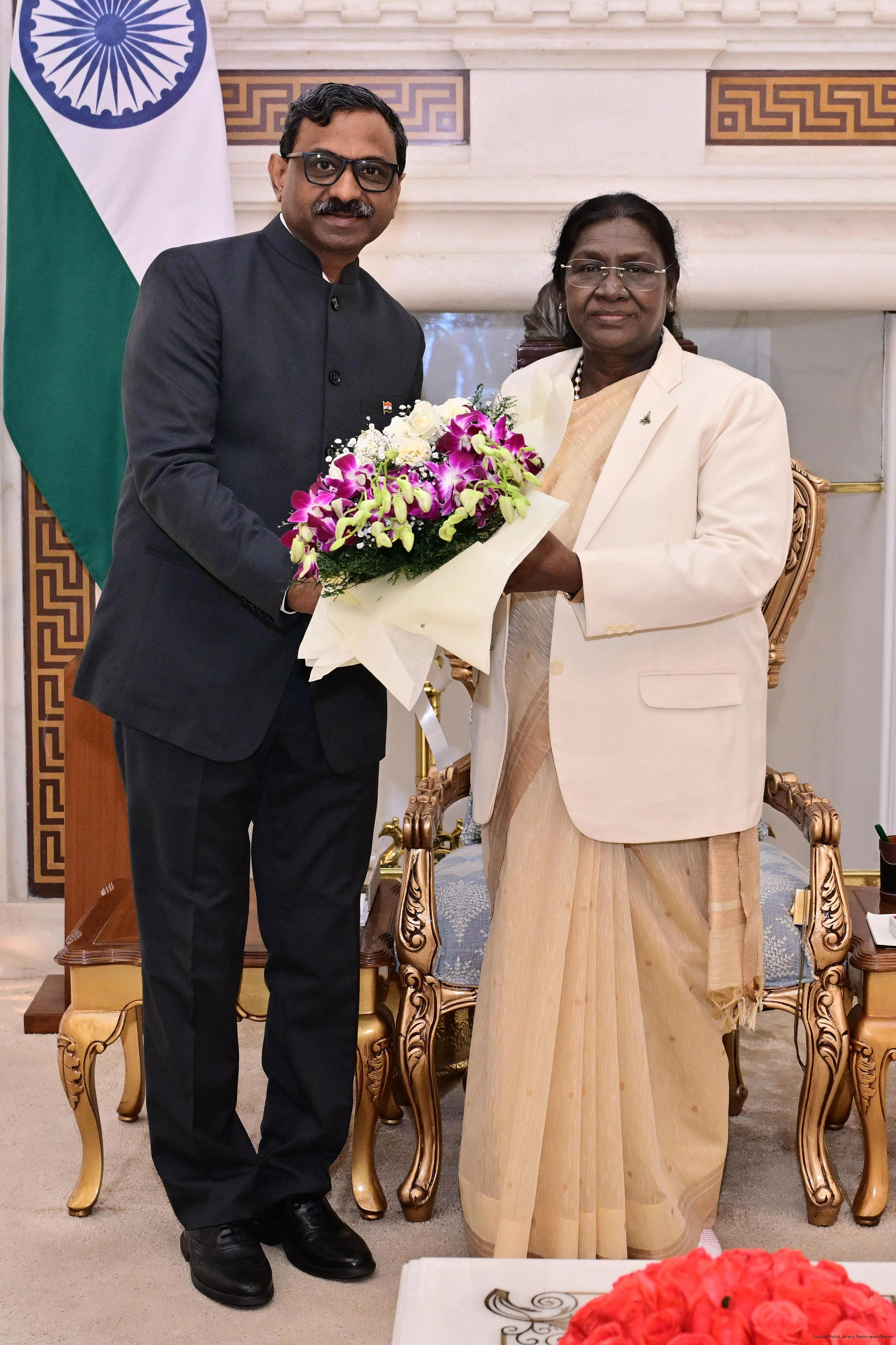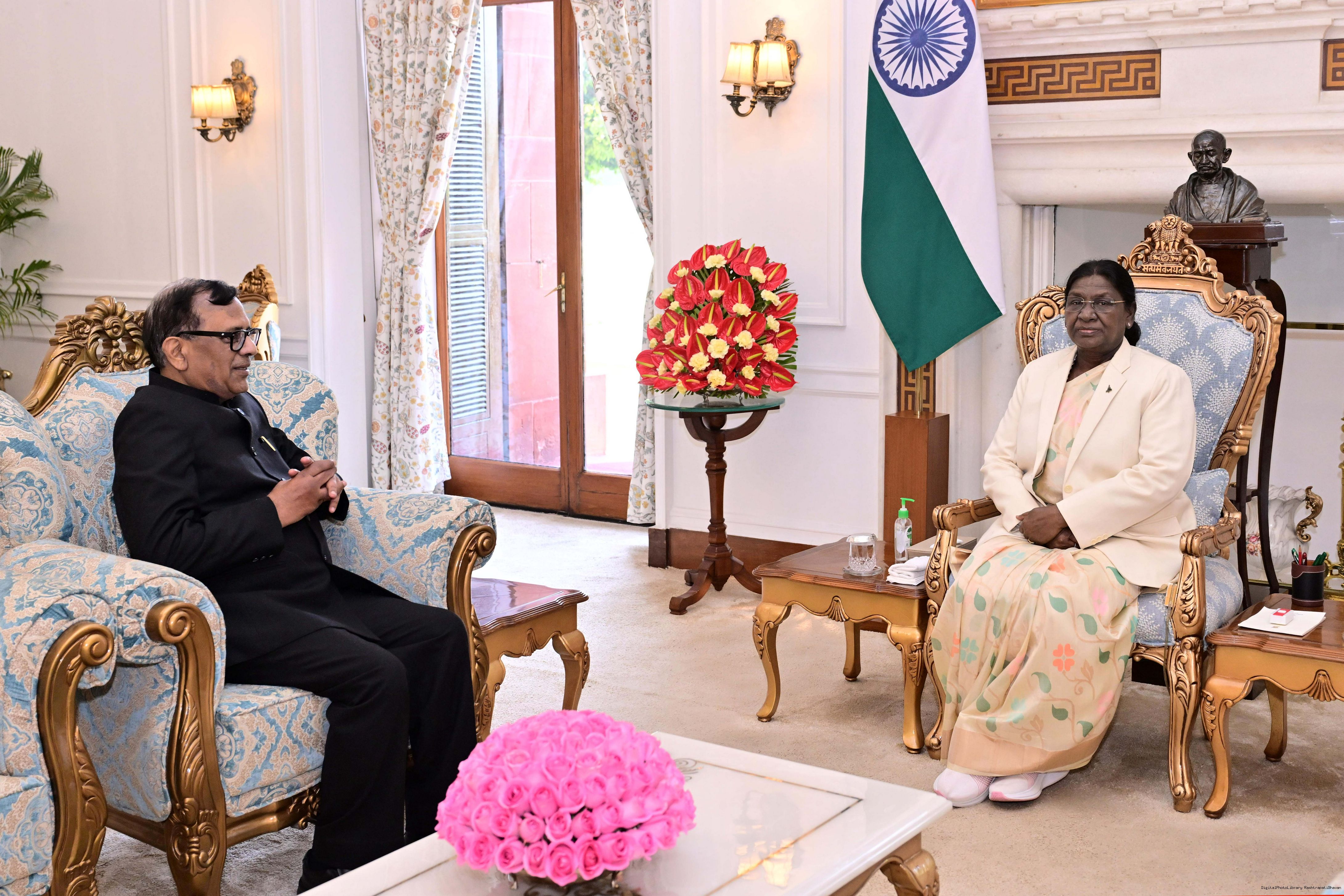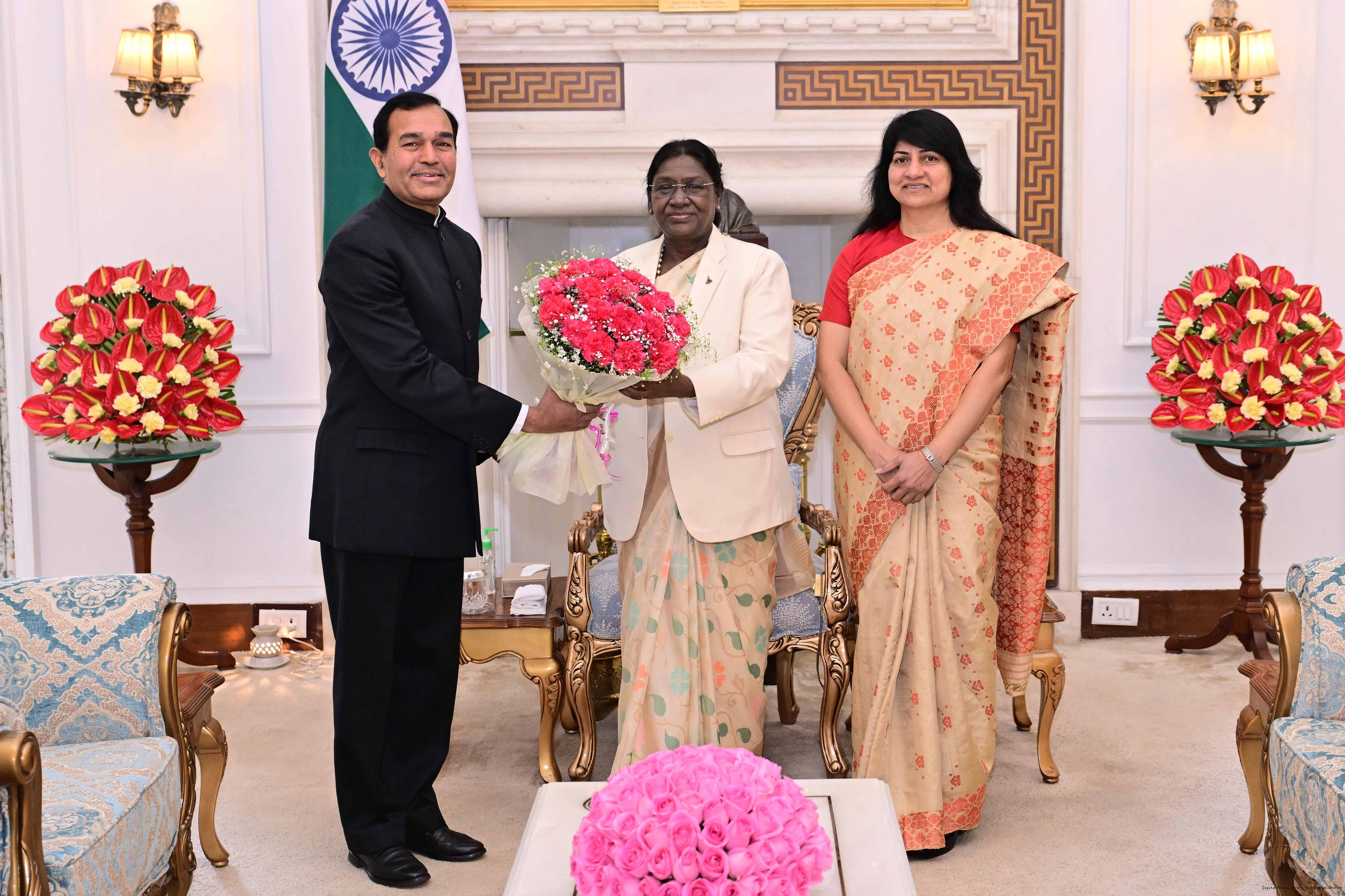 Shri Raj Kumar Goyal, CIC, Central Information Commission meeting with the President of India, Smt Droupadi Murmu at Rashtrapati Bhavan on January 12, 2026.
