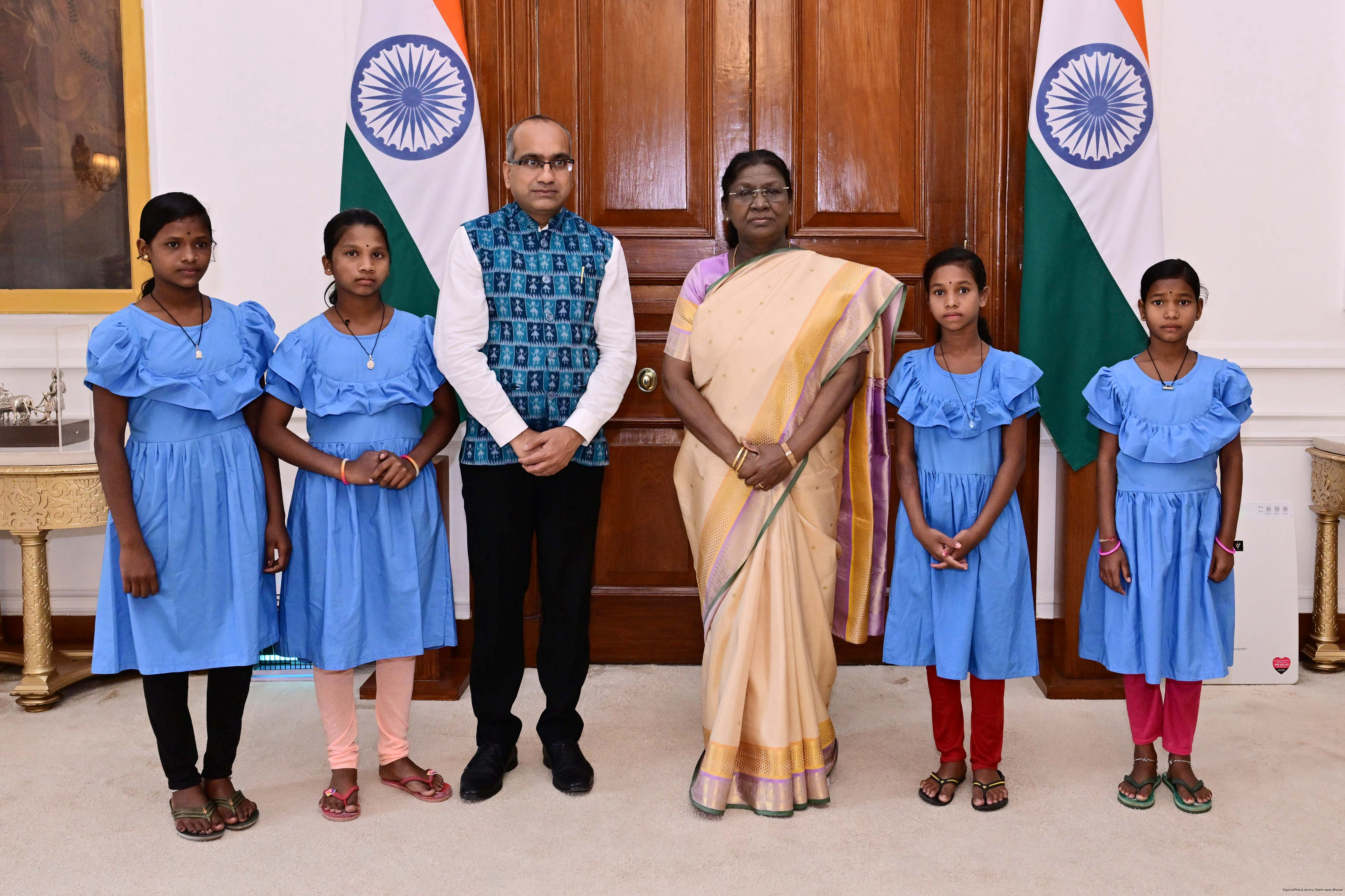 Shri Sujeet Kumar, MP (RS) along with tribal girls from Kalahandi, Odisha meeting with the President of India, Smt Droupadi Murmu at Rashtrapati Bhavan on February 12, 2026.