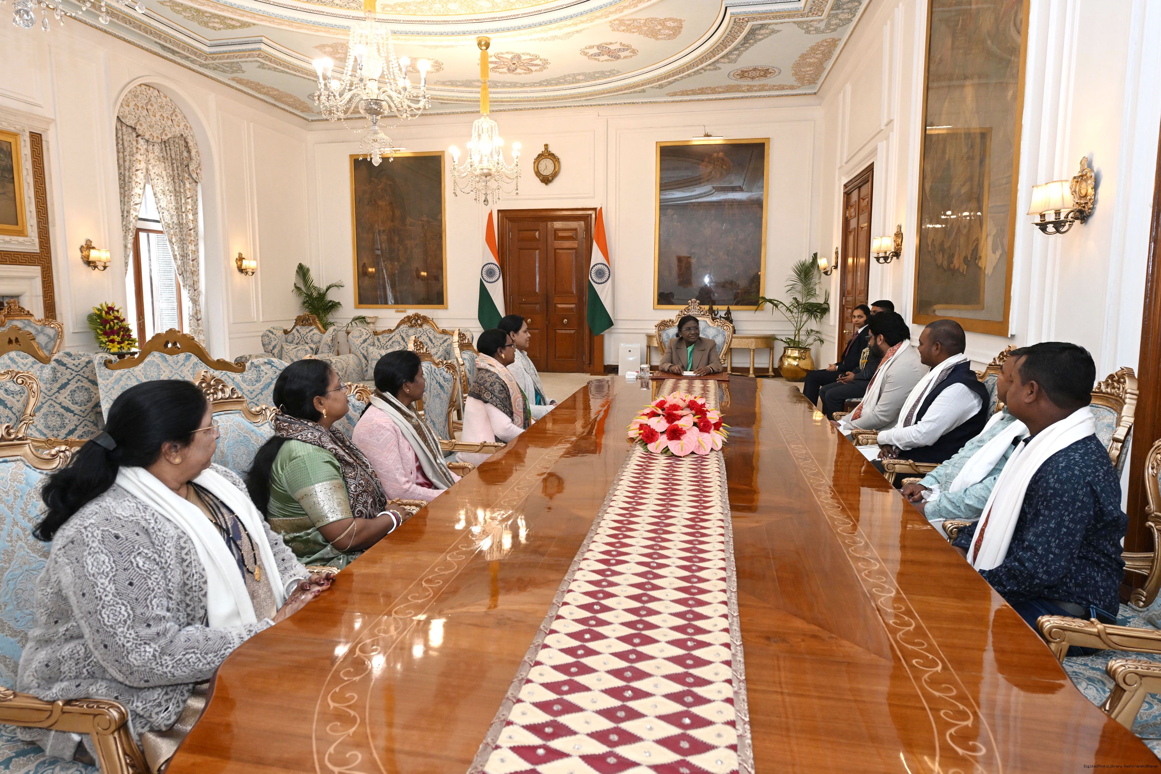 Shri Sundar Mohan Marandi along with others meeting with the President of India Smt. Droupadi Murmu at Rashtrapati Bhavan on March 5, 2026.