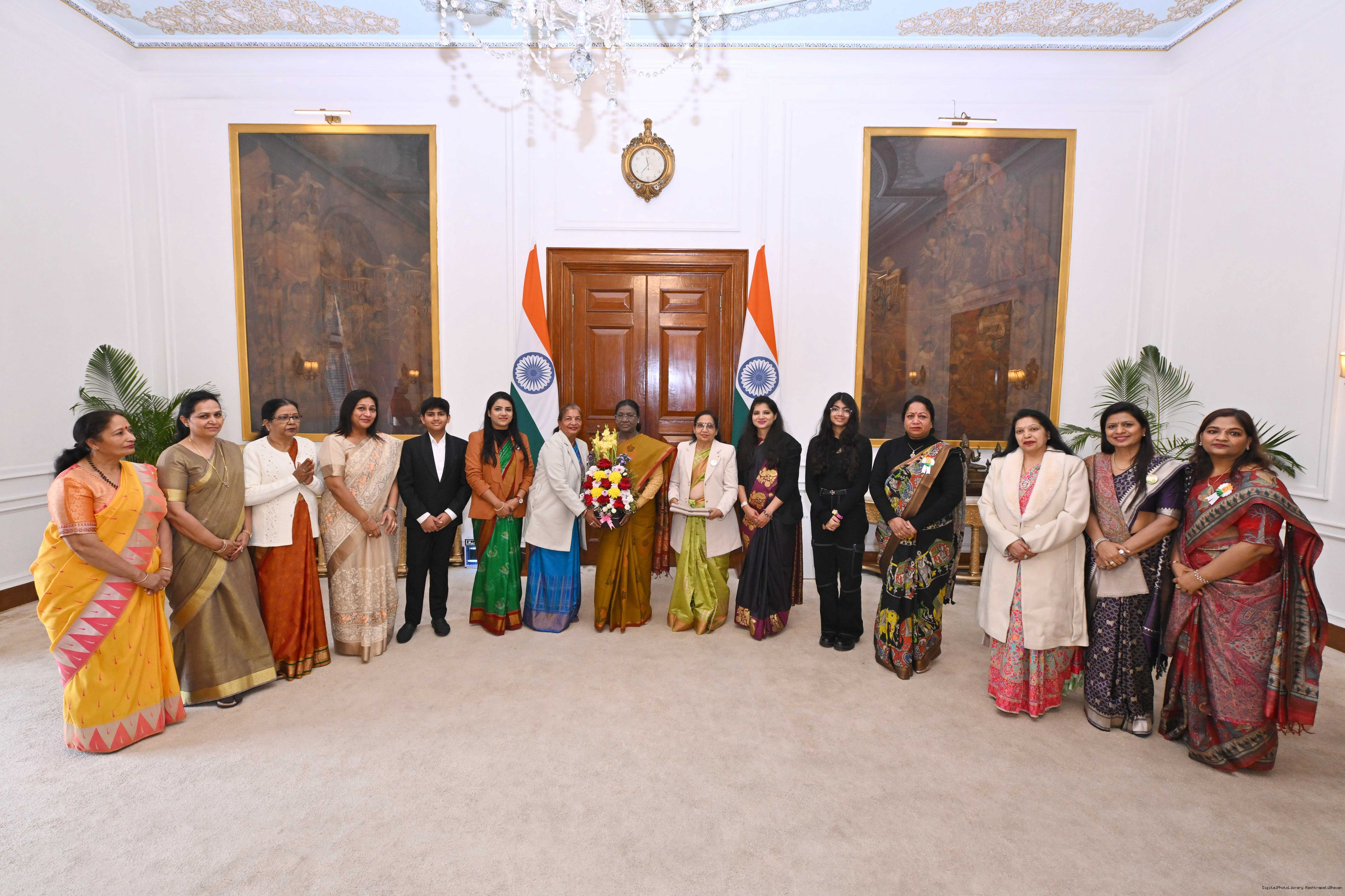 Smt. Darshan Goel, National Advisor, National Women Cell, Bharat Lok Shiksha Parishad along with Smt. Vidhi Geol and others meeting with the President of India, Smt Droupadi Murmu at Rashtrapati Bhavan on January 22, 2026.