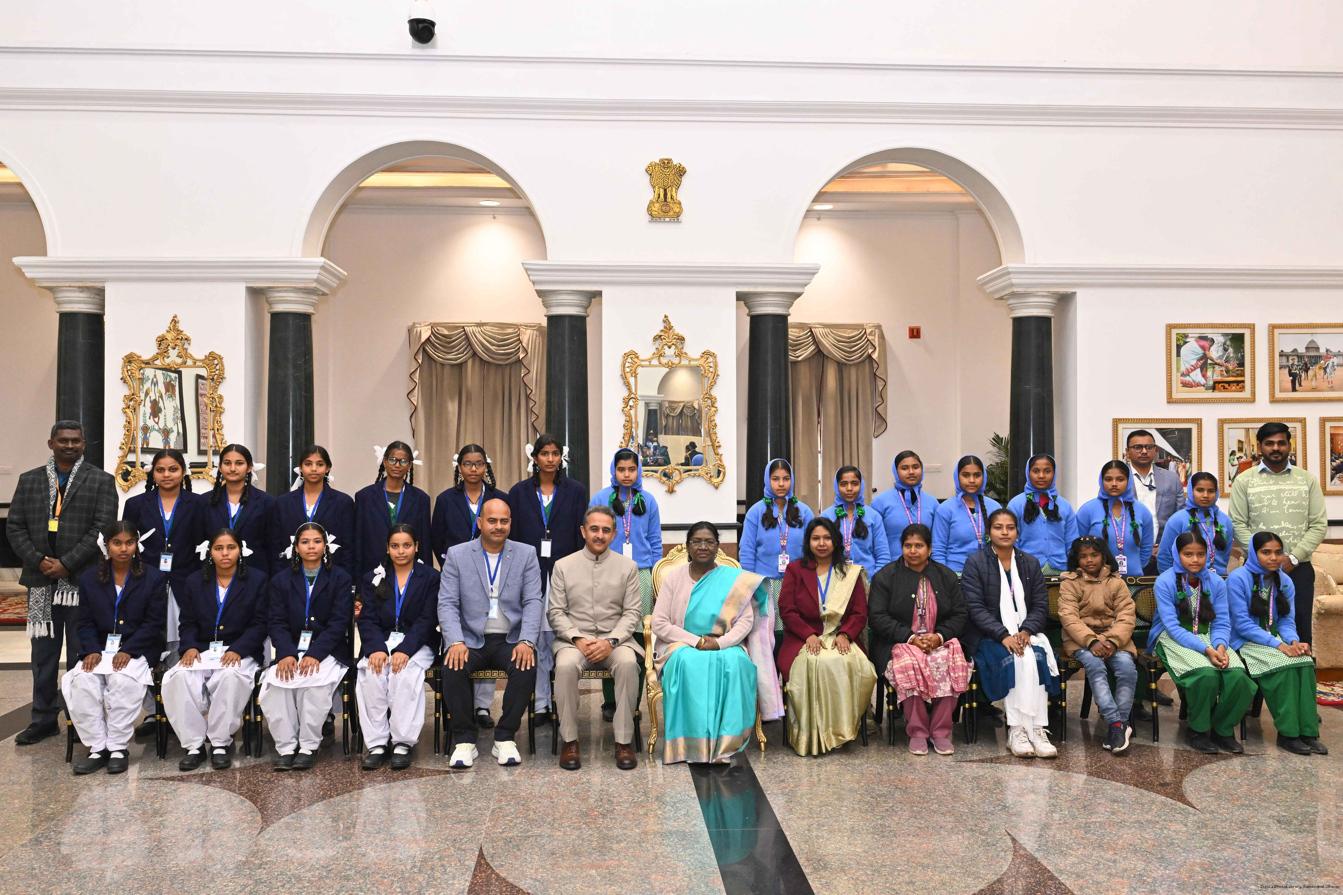 Separate groups of students from Leh, Jharkhand and Jammu Kashmir called on the President of India, Smt Droupadi Murmu at Rashtrapati Bhavan on January 27, 2026. The group visited Rashtrapati Bhavan as part of the National Integration Tour.
