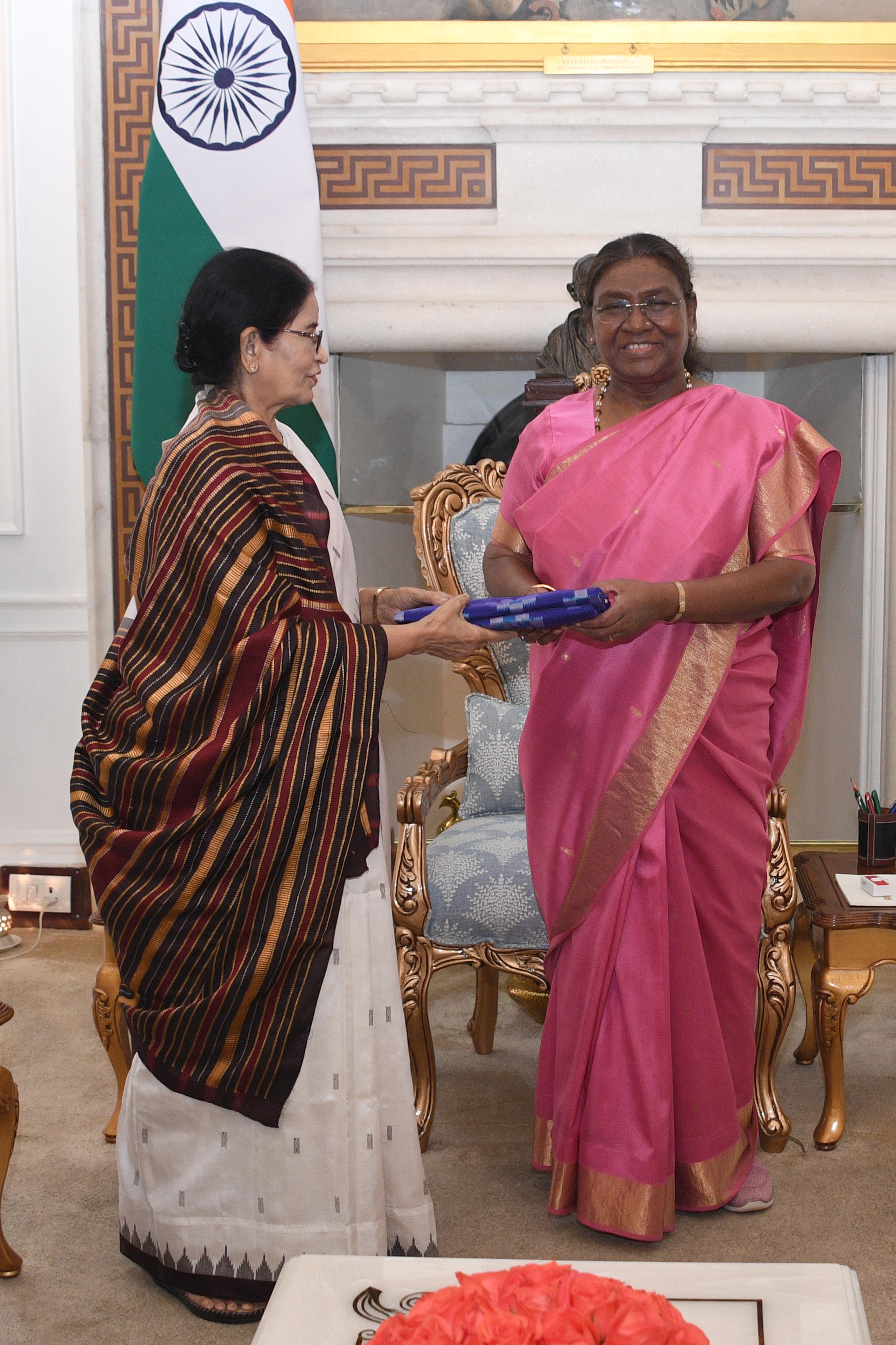 Smt. Reema Tudu along with others meeting with the president of India Smt Droupadi Murmu at Rashatrapati Bhawan on June 24, 2024.