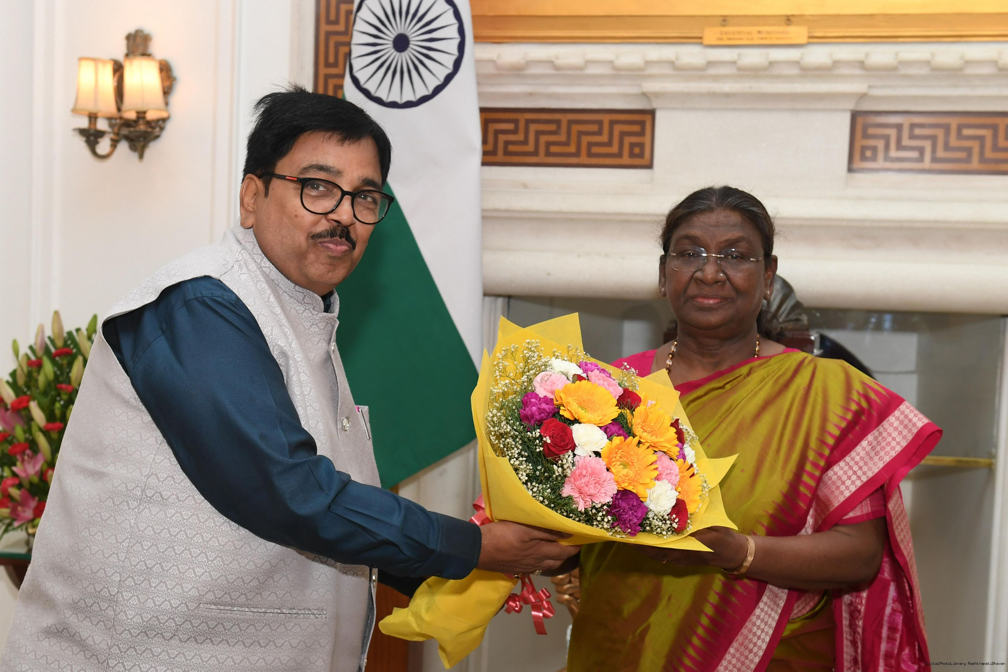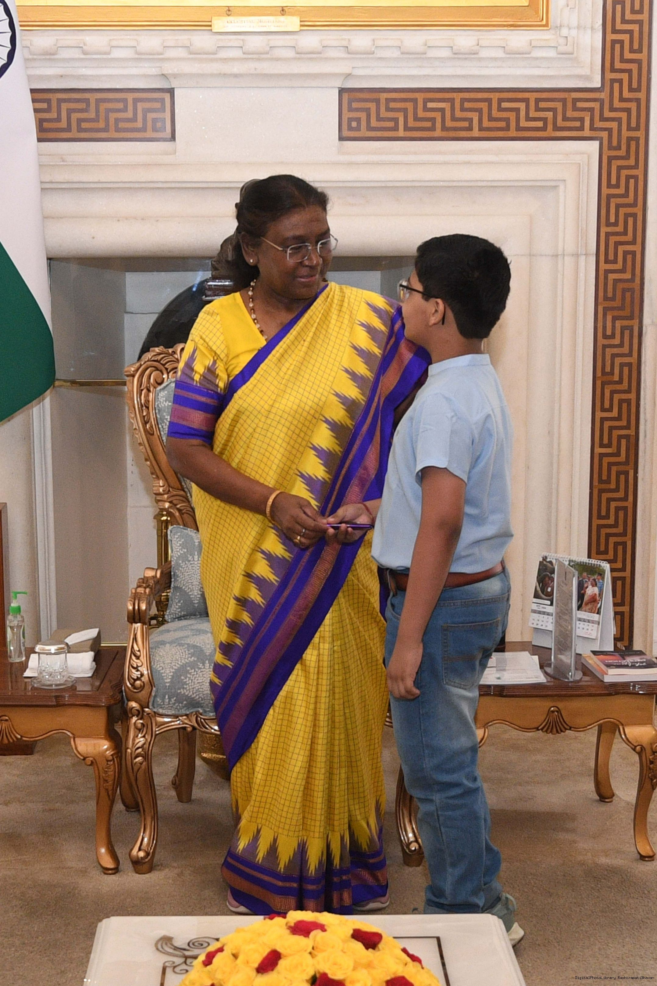 Shri Monaj kumar Dhandhania form Rairangpur meeting with the president of India Smt Droupadi Murmu at Rashatrapati Bhawan on June 20, 2024.