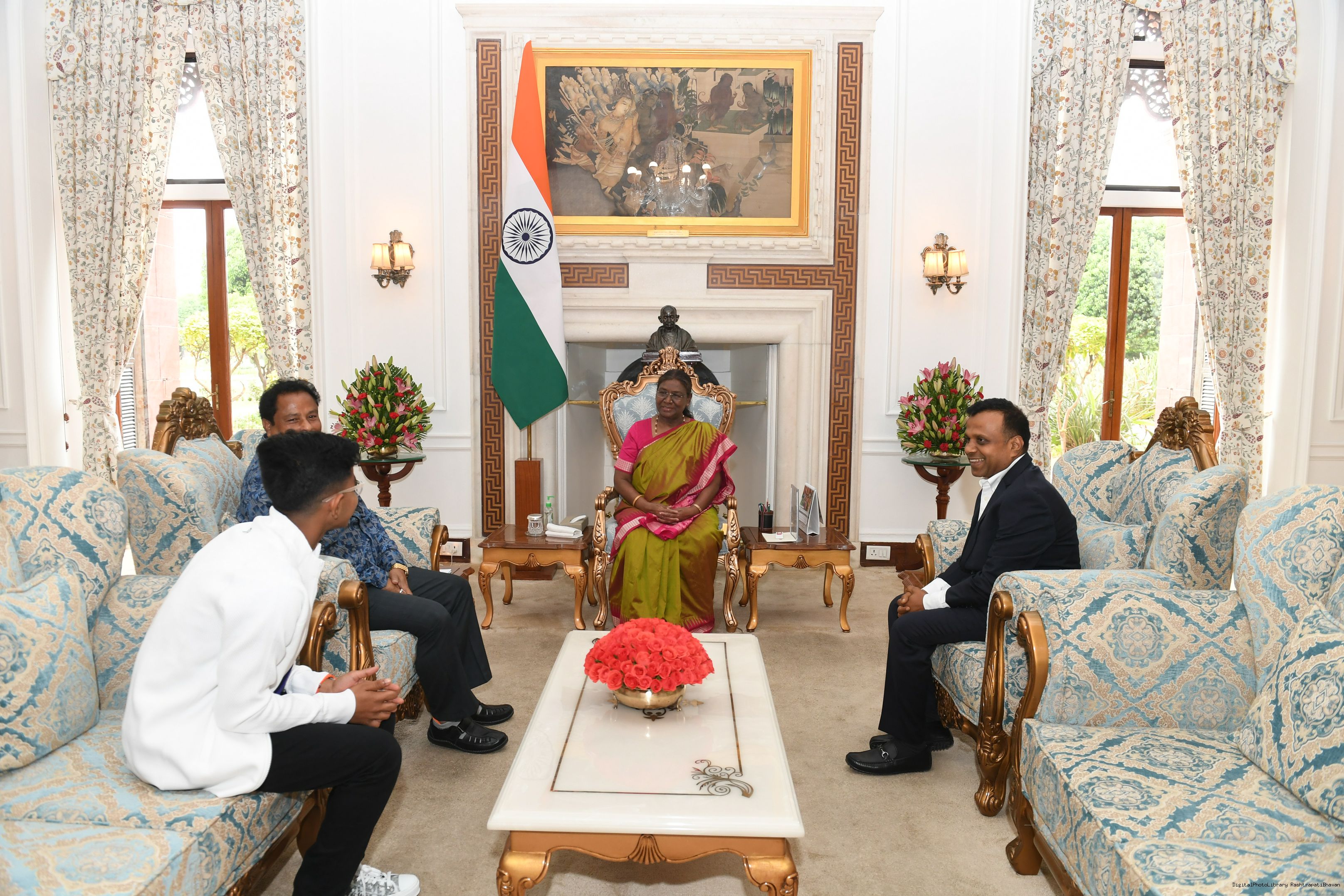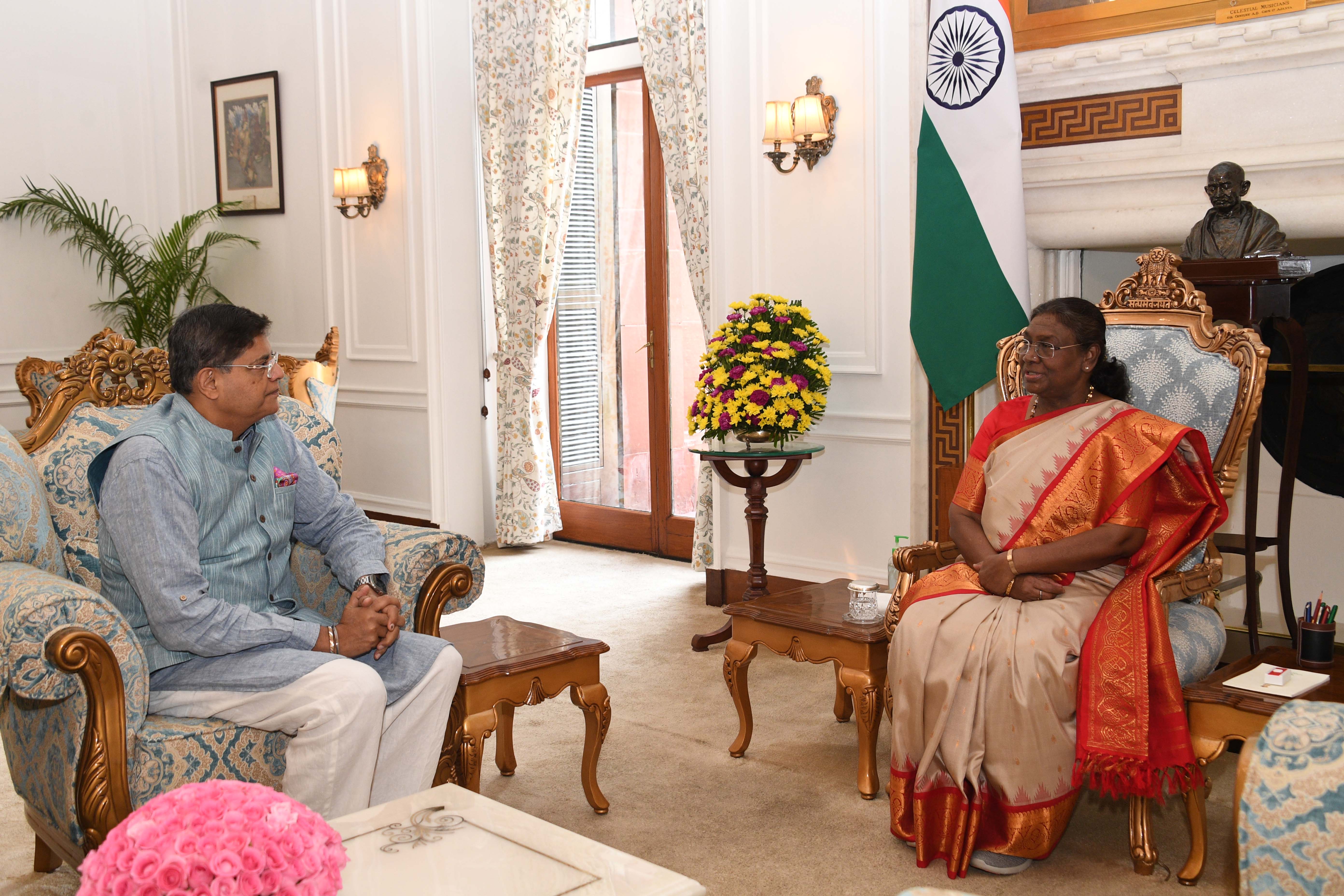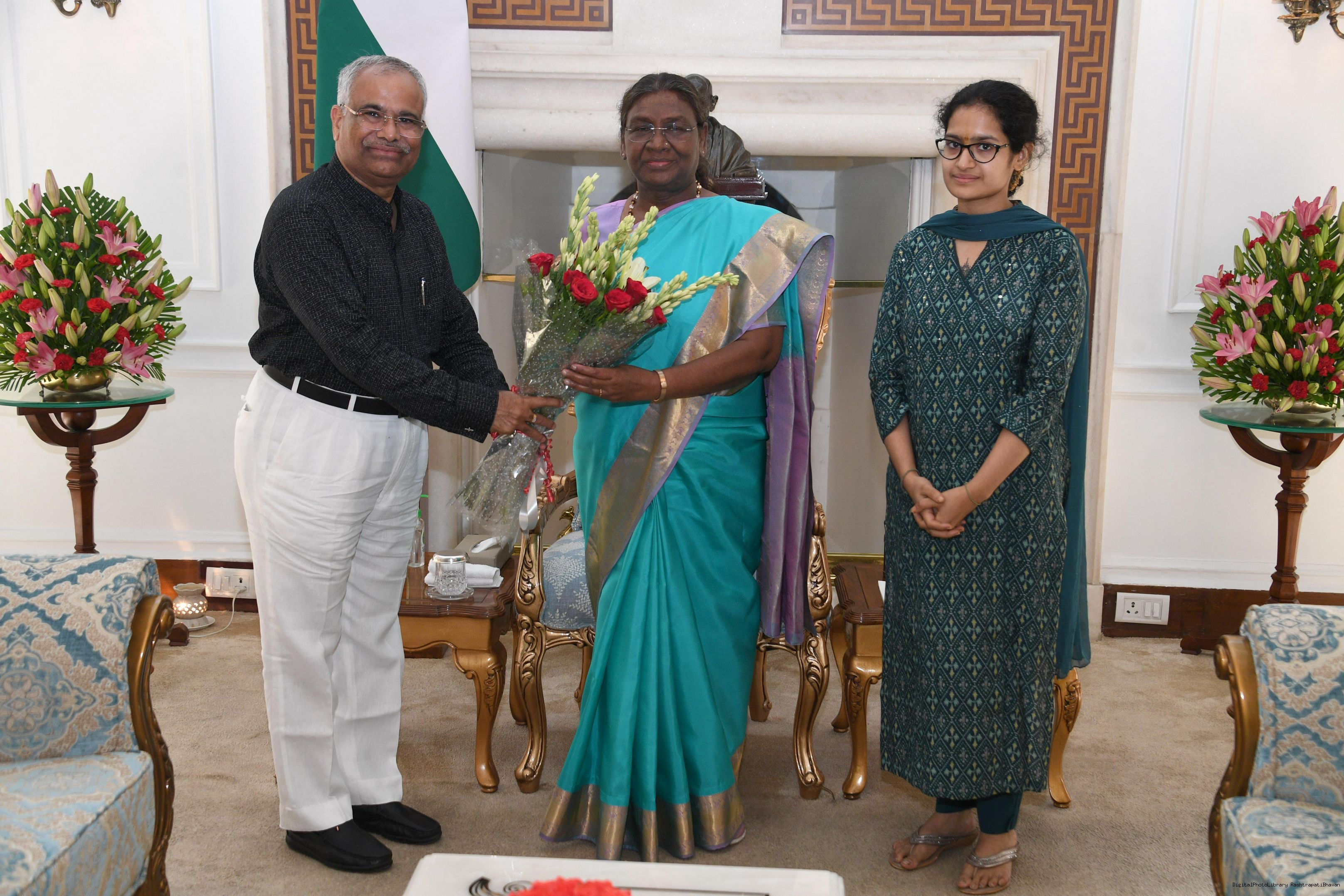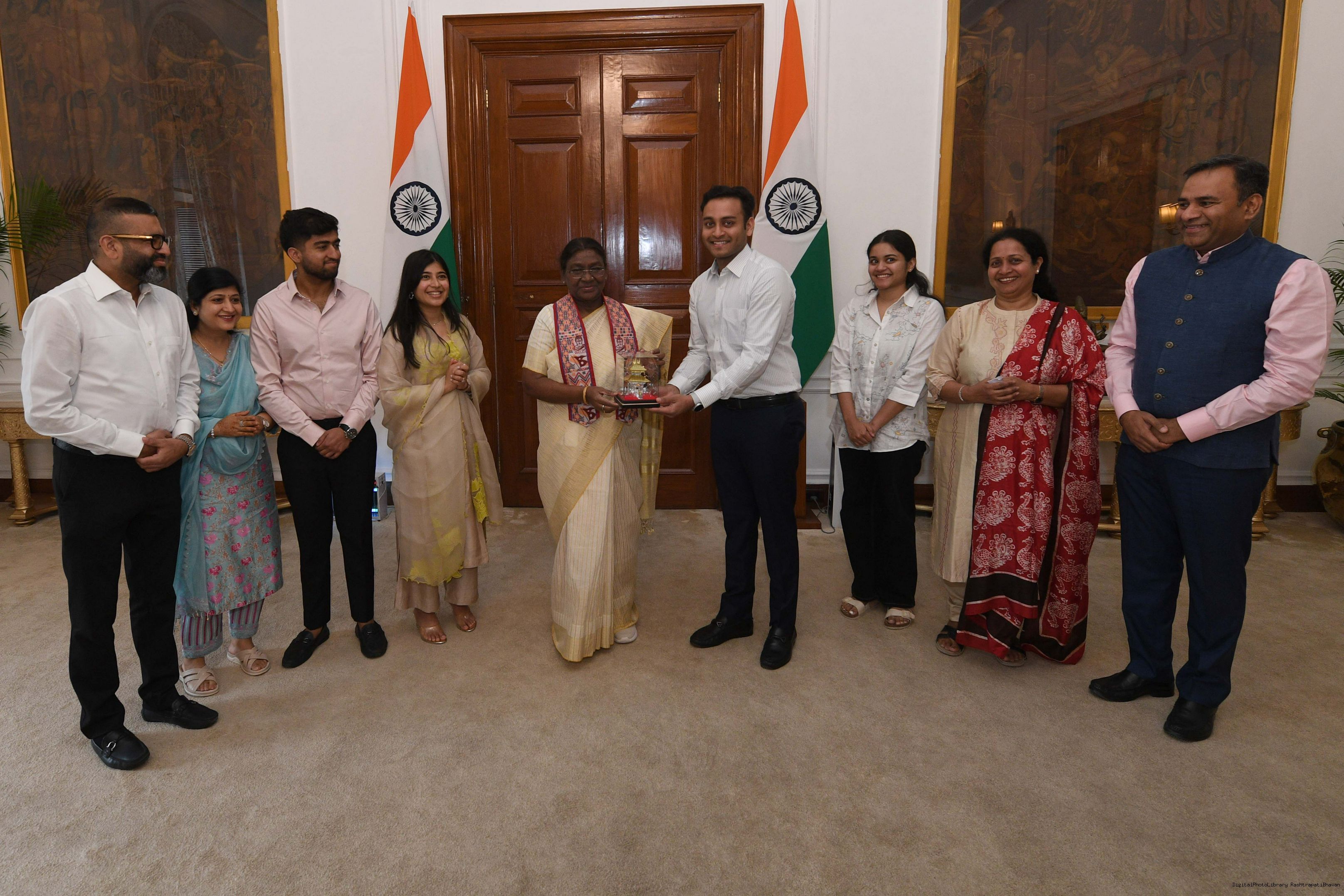Shri Pankaj Kumar Poddar along with others meeting with the president of India Smt Droupadi Murmu at Rashatrapati Bhawan on June 26, 2024.