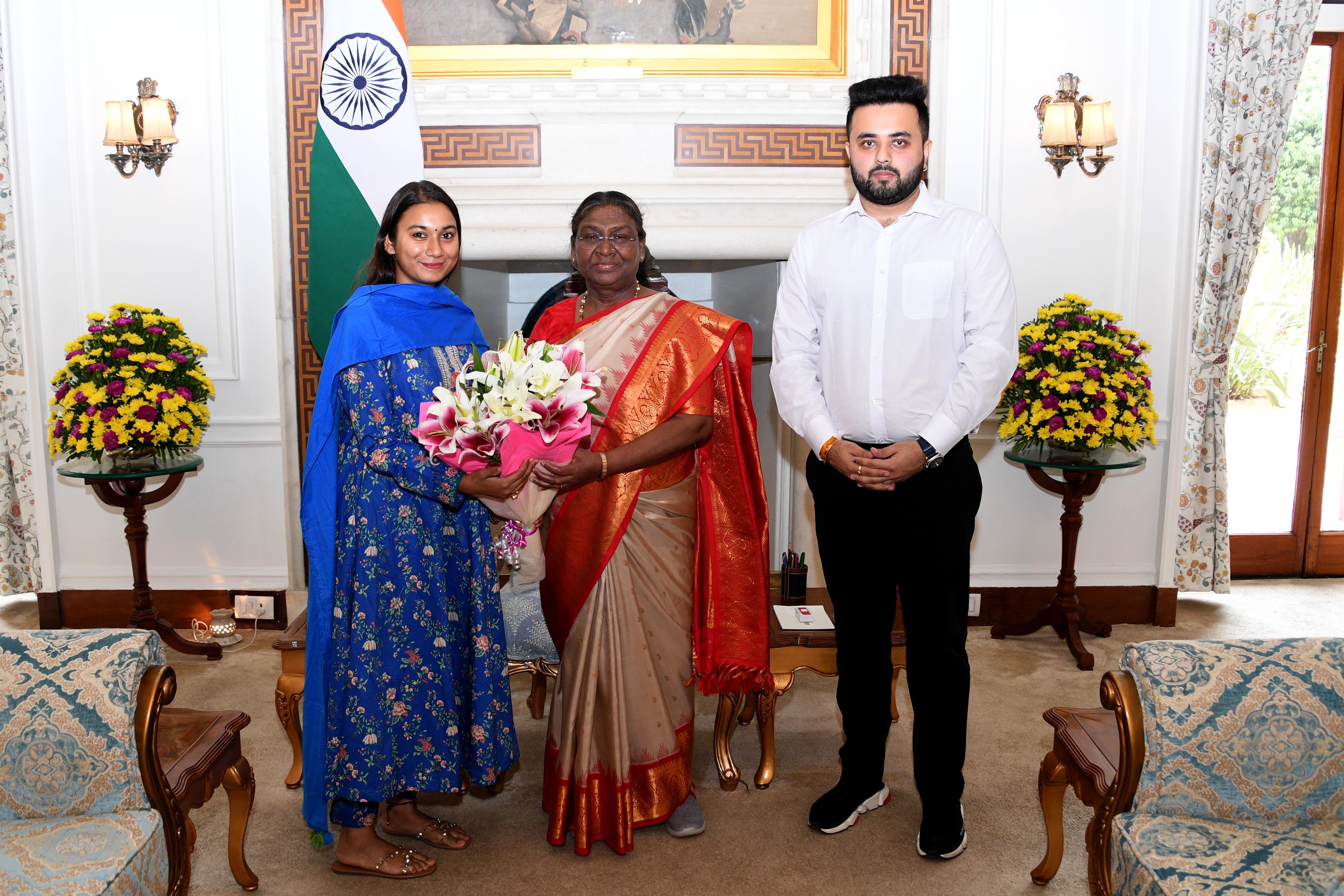Smt. Shambavi Chaudhary, Member of Parliament (Lok Sabha) meeting with the President of India, Smt Droupadi Murmu at Rashtrapati Bhavan on June 19, 2024.