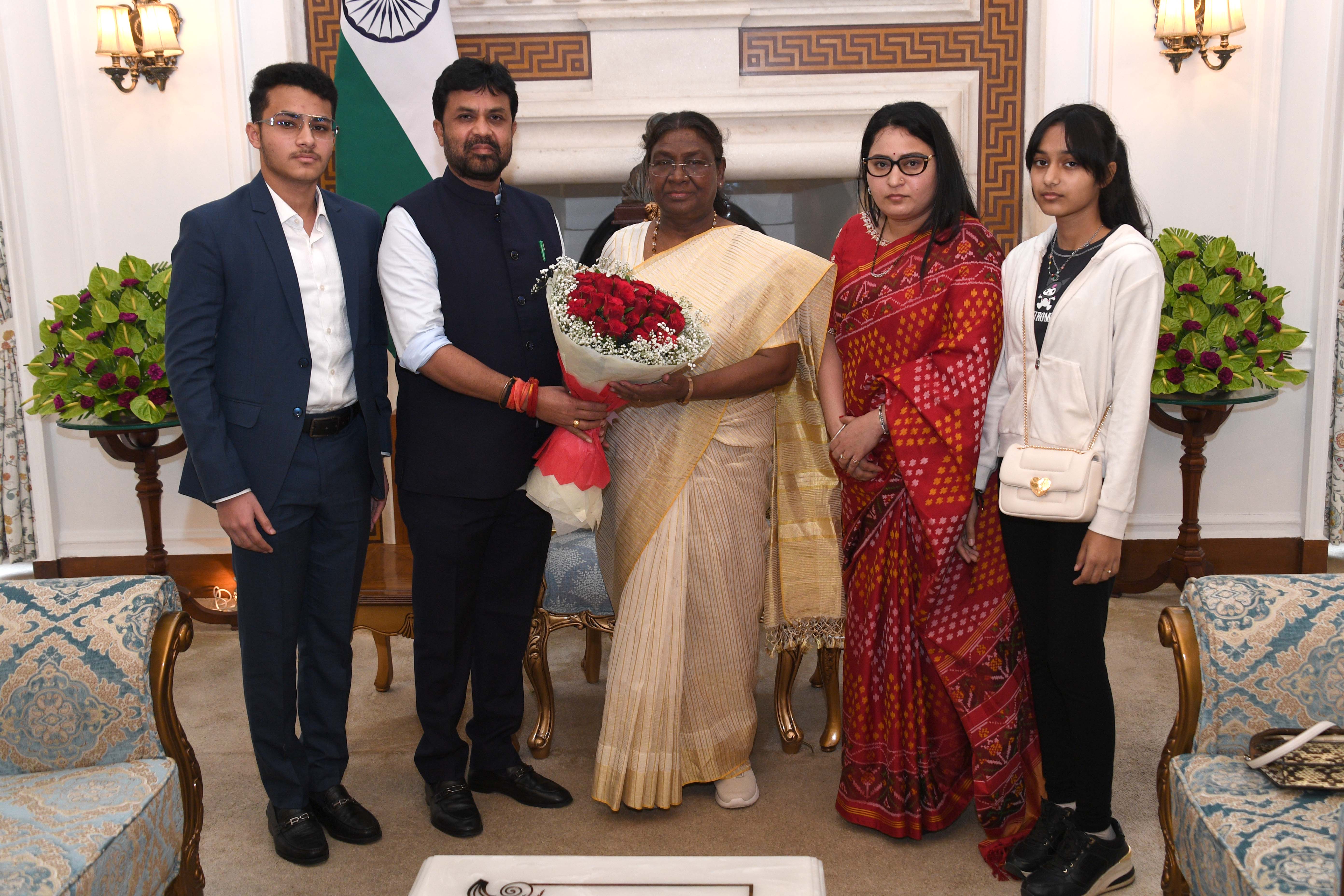 Shri Pitambar Acharya, Sr. Advocate Spokespersons, BJP Odisha along with his daughter meeting with the president of India Smt Droupadi Murmu at Rashatrapati Bhawan on June 20, 2024.