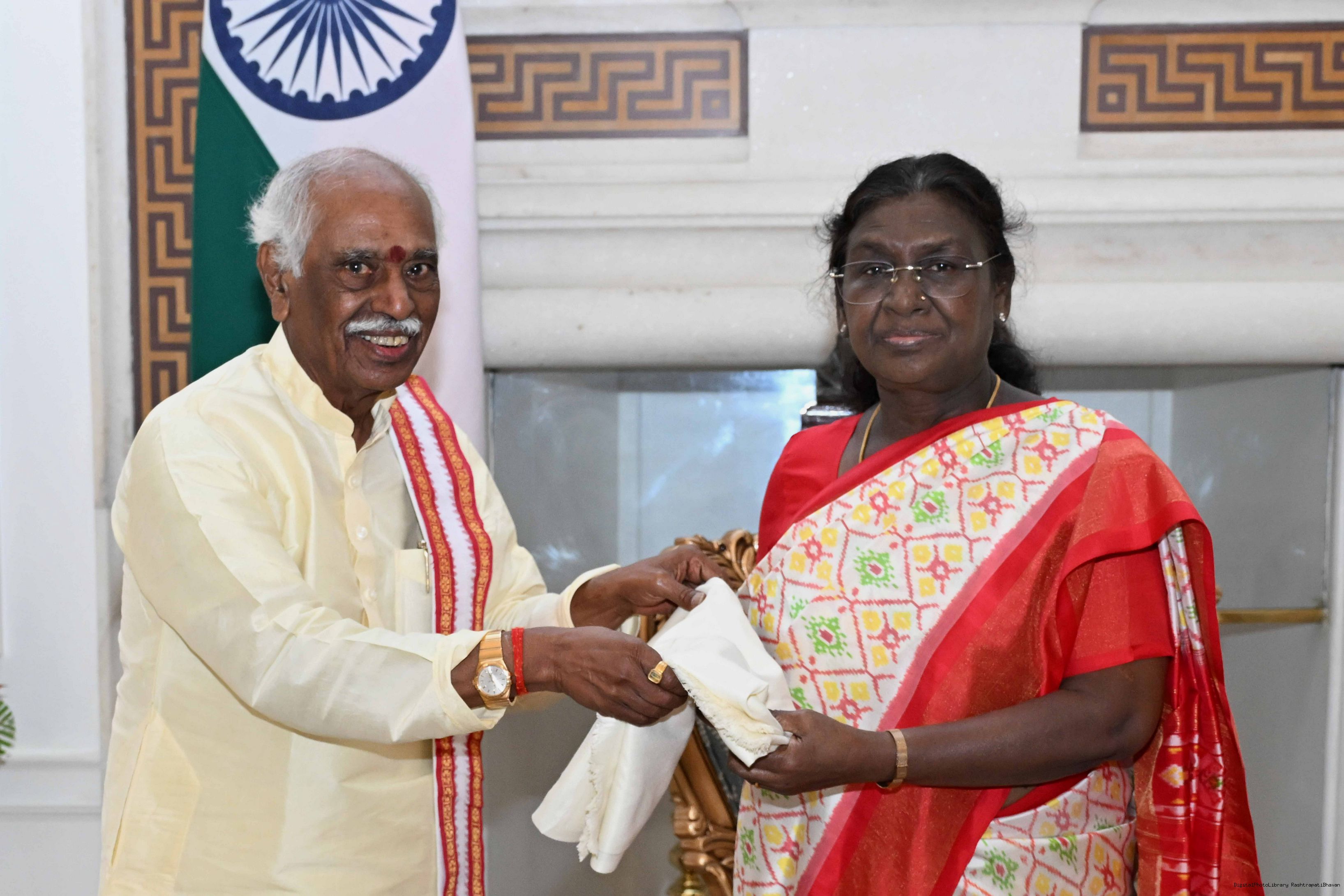Shri Bandaru Dattatraya, Former Governor of Himachal Pradesh Haryana meeting with the President of India, Smt Droupadi Murmu at Rashtrapati Bhavan on September 1, 2025.