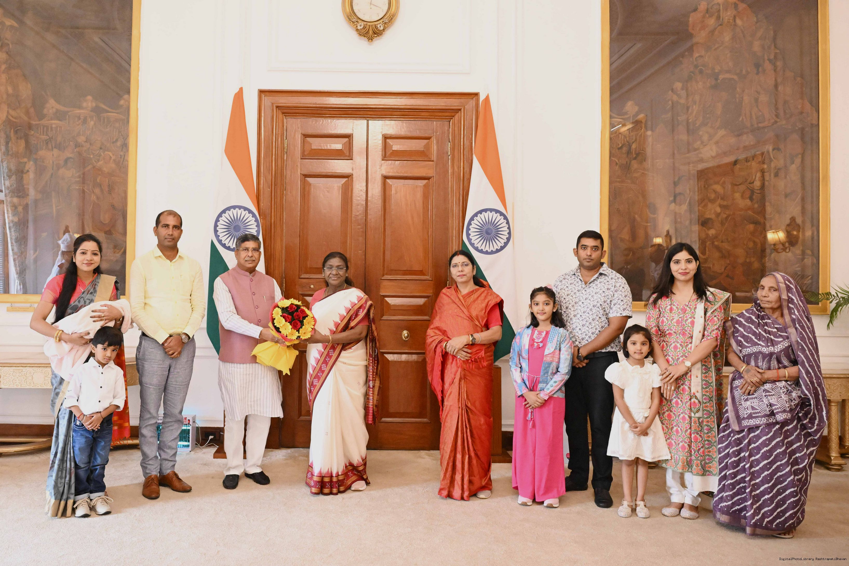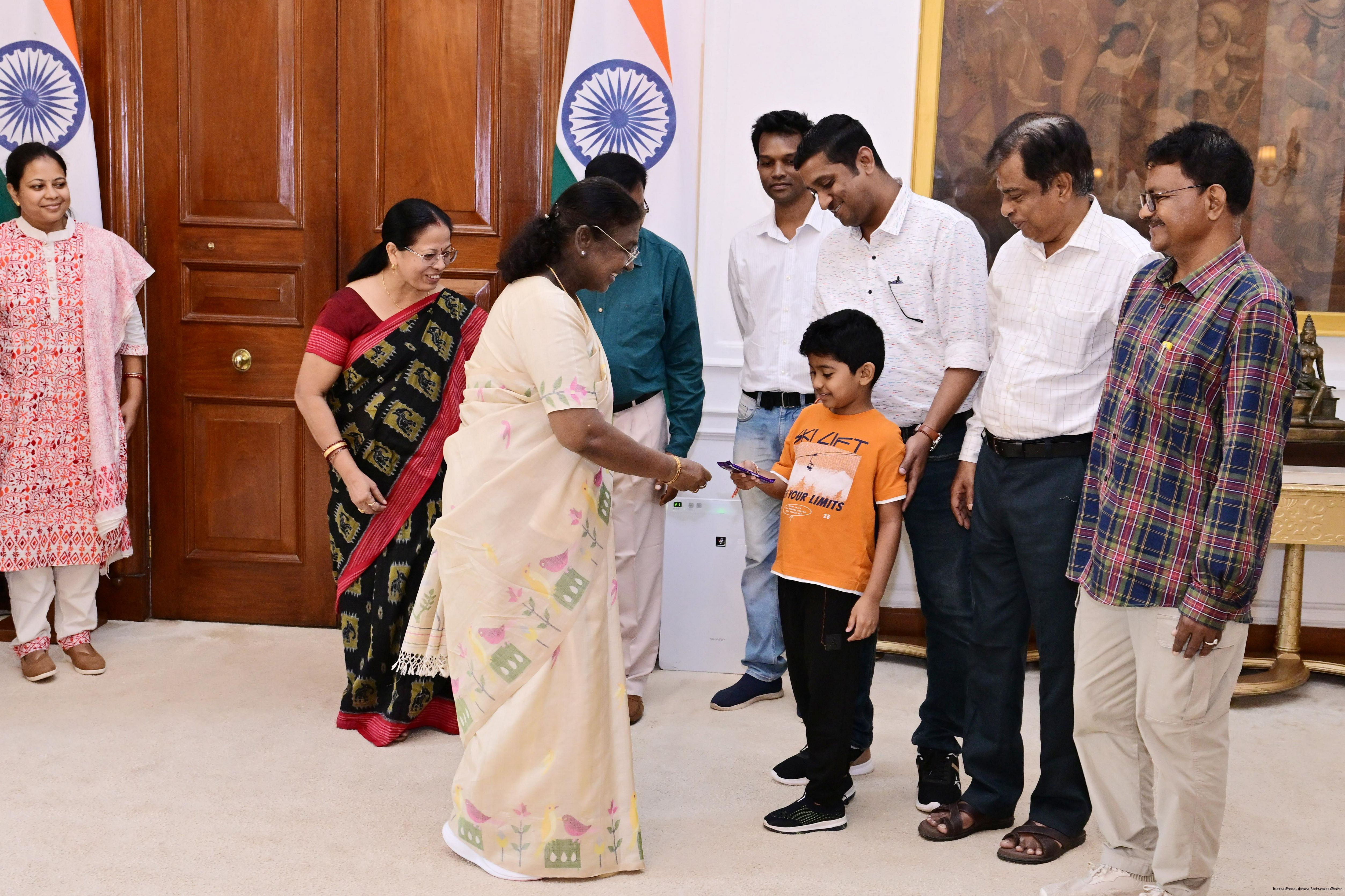 Shri Aditya Prasad Sahu, MP (RS) and State General Secretary, BJP, Odisha along with wife and others meeting with the President of India, Smt Droupadi Murmu at Rashtrapati Bhavan on August 22, 2025.