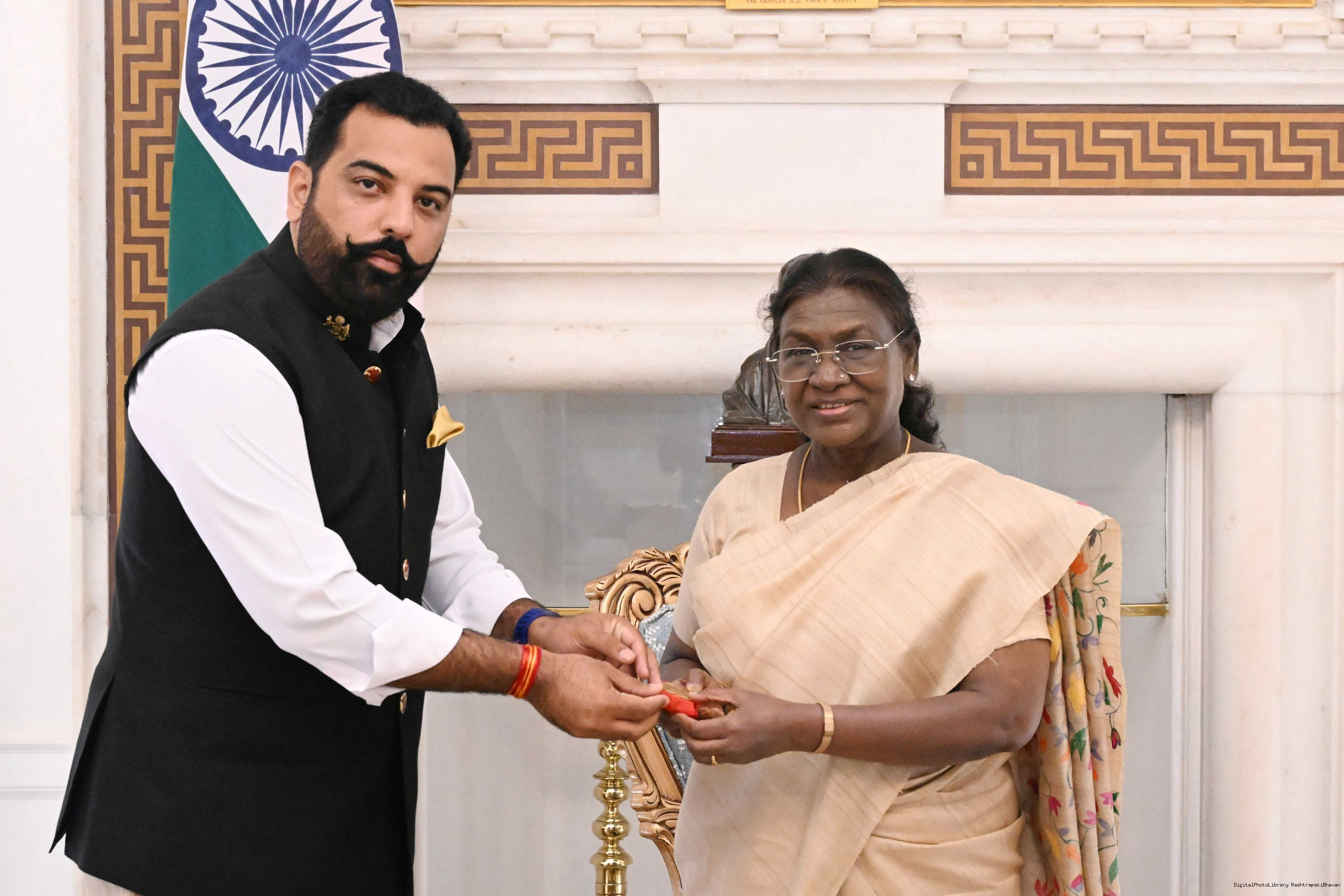 Shri Lakashyaraj Singh Mewar, 77th Custodian of the House of Mewar meeting with the President of India, Smt. Droupadi Murmu at Rashtrapati Bhavan on September 9, 2025.