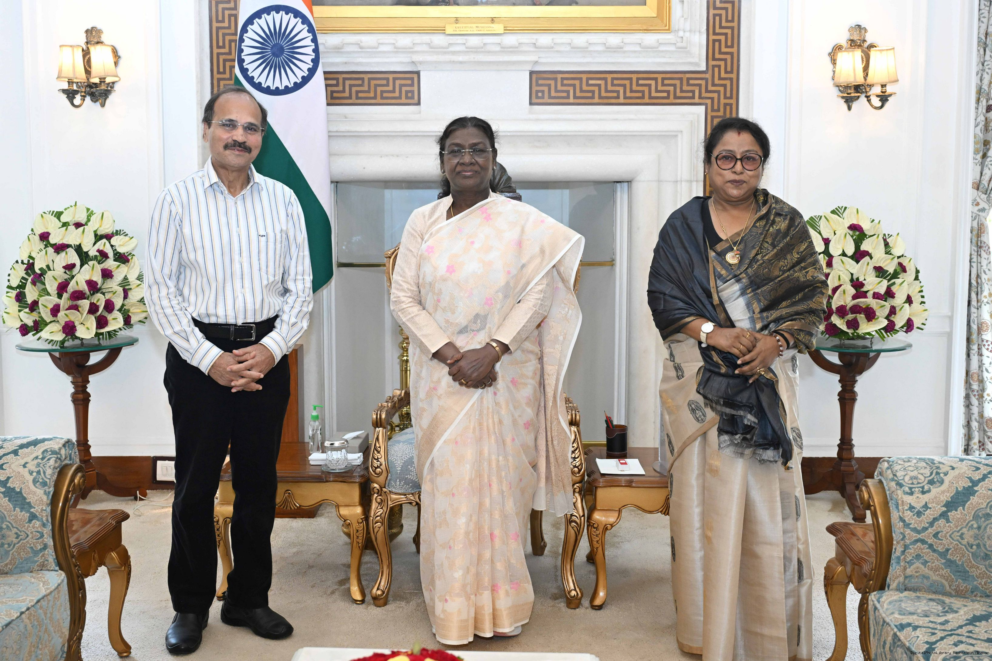 Shri Adhir Ranjan Chowdhary, former Union Minister and Leader of Indian National Congress in 17th Lok Sabha along with spouse Dr. Atasi Chowdhary meeting with the President of India, Smt. Droupadi Murmu at Rashtrapati Bhavan on September 10, 2025.