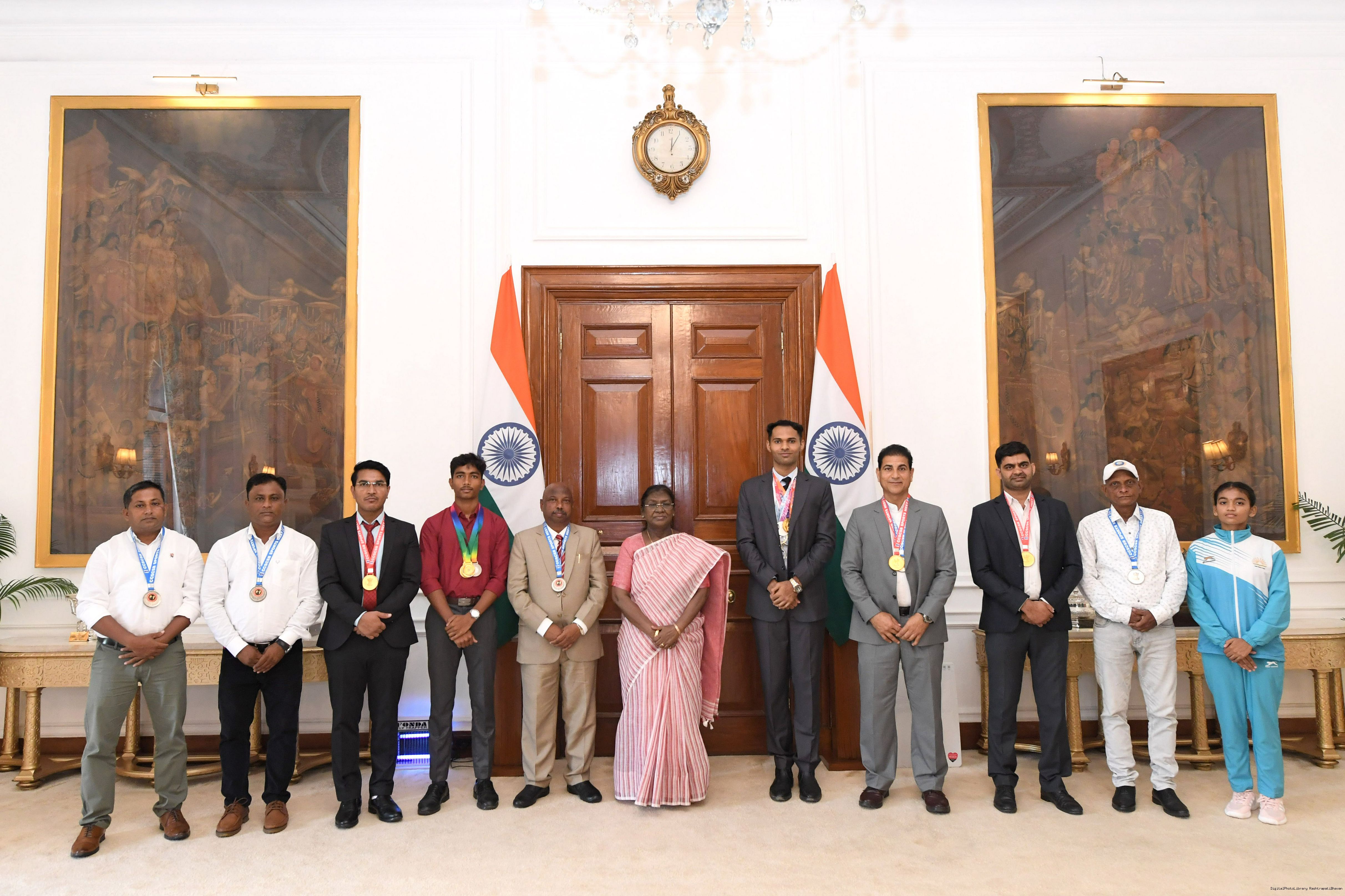 Shri Gautam Kumar, US along with others, sports achievers meeting with the President of India, Smt. Droupadi Murmu at Rashtrapati Bhavan on September 11, 2025.