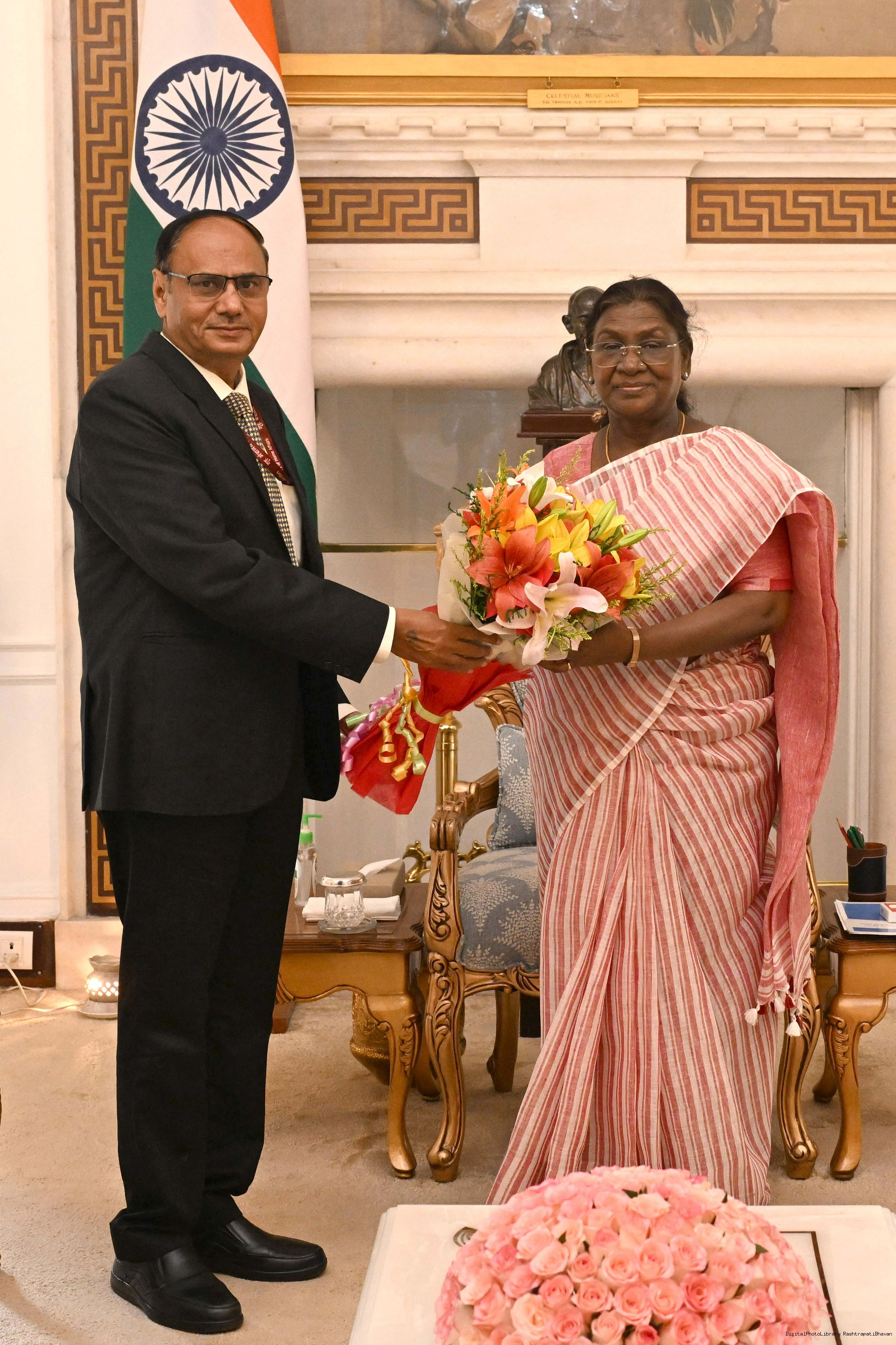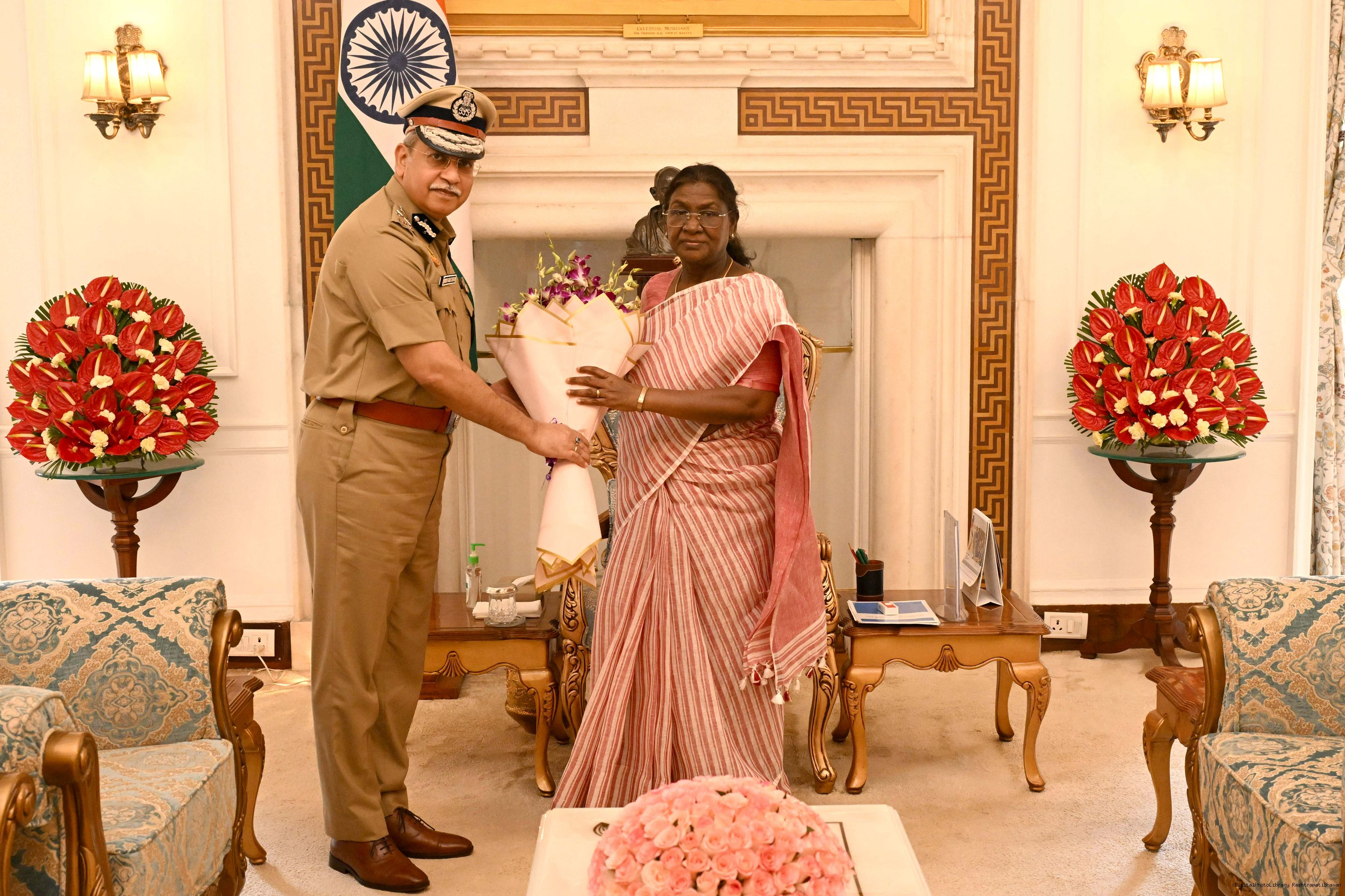 Shri Satish Golchha, IPS 1992 AGMUT Cadre, Commissioner of Police, Delhi meeting with the President of India, Smt. Droupadi Murmu at Rashtrapati Bhavan on September 11, 2025.