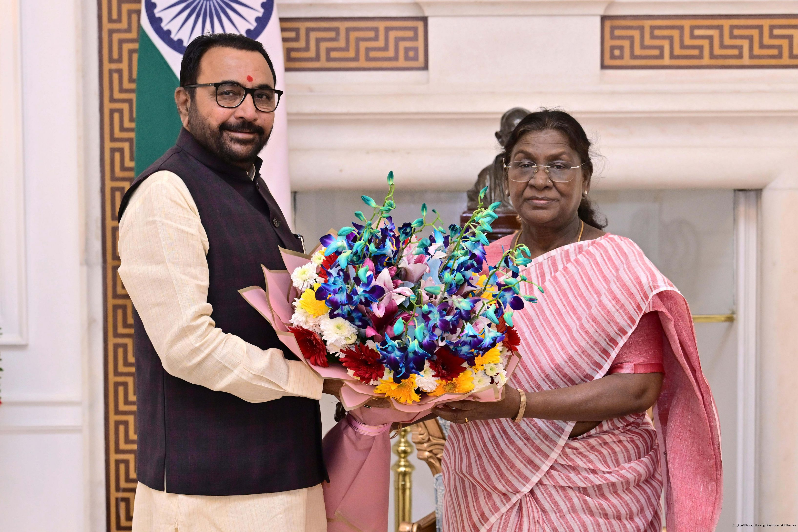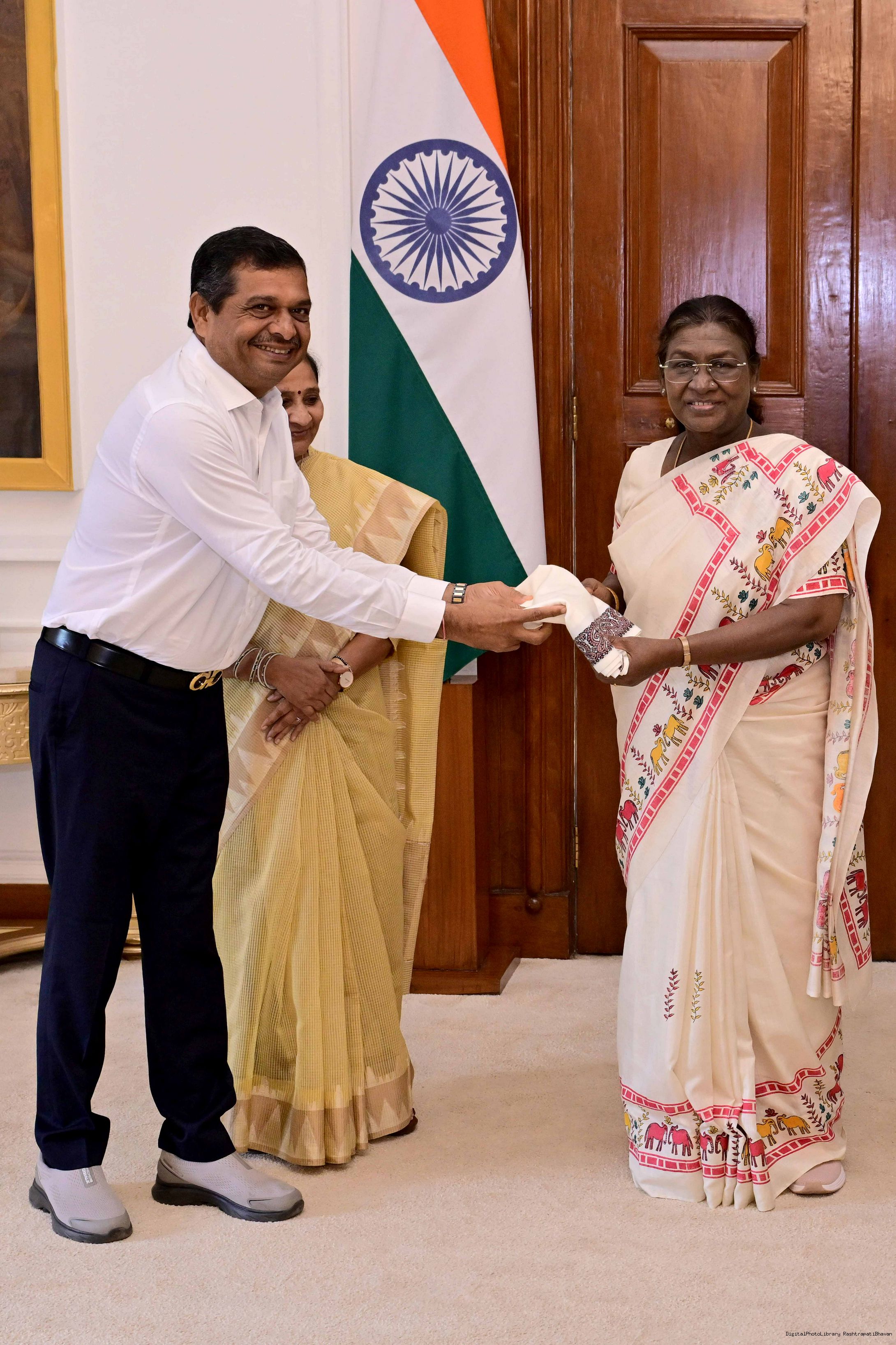 Shri Prataprao Jadhav, Minister of State (IC), Ministry of Ayush and MoS for Health and Family Welfare meeting with the President of India, Smt. Droupadi Murmu at Rashtrapati Bhavan on September 11, 2025.