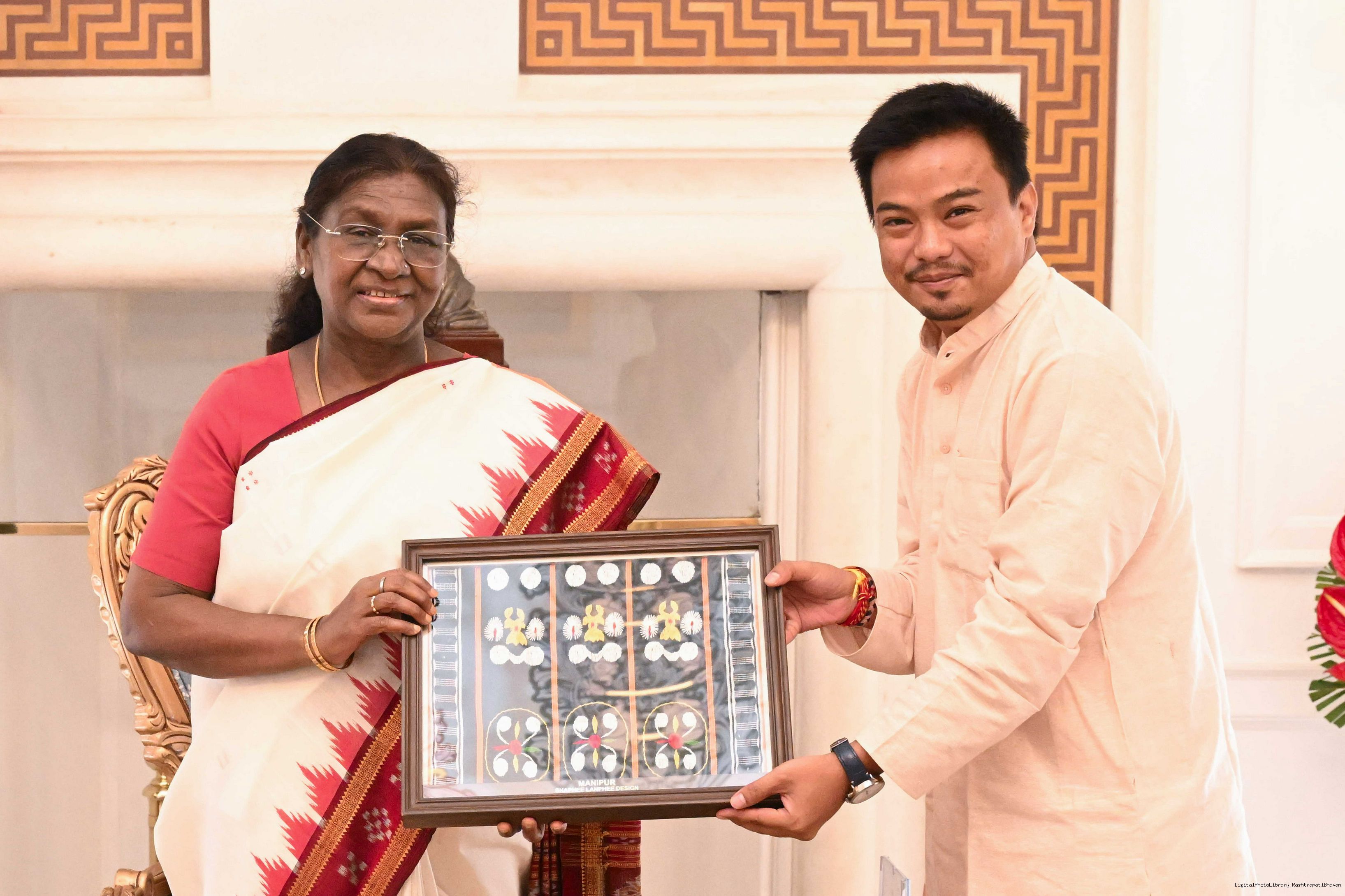 Shri Baidhar Mallick, Ex-MLA Nimapada along with Shri Konsam Santosh Singh meeting with the President of India, Smt Droupadi Murmu at Rashtrapati Bhavan on August 22, 2025.