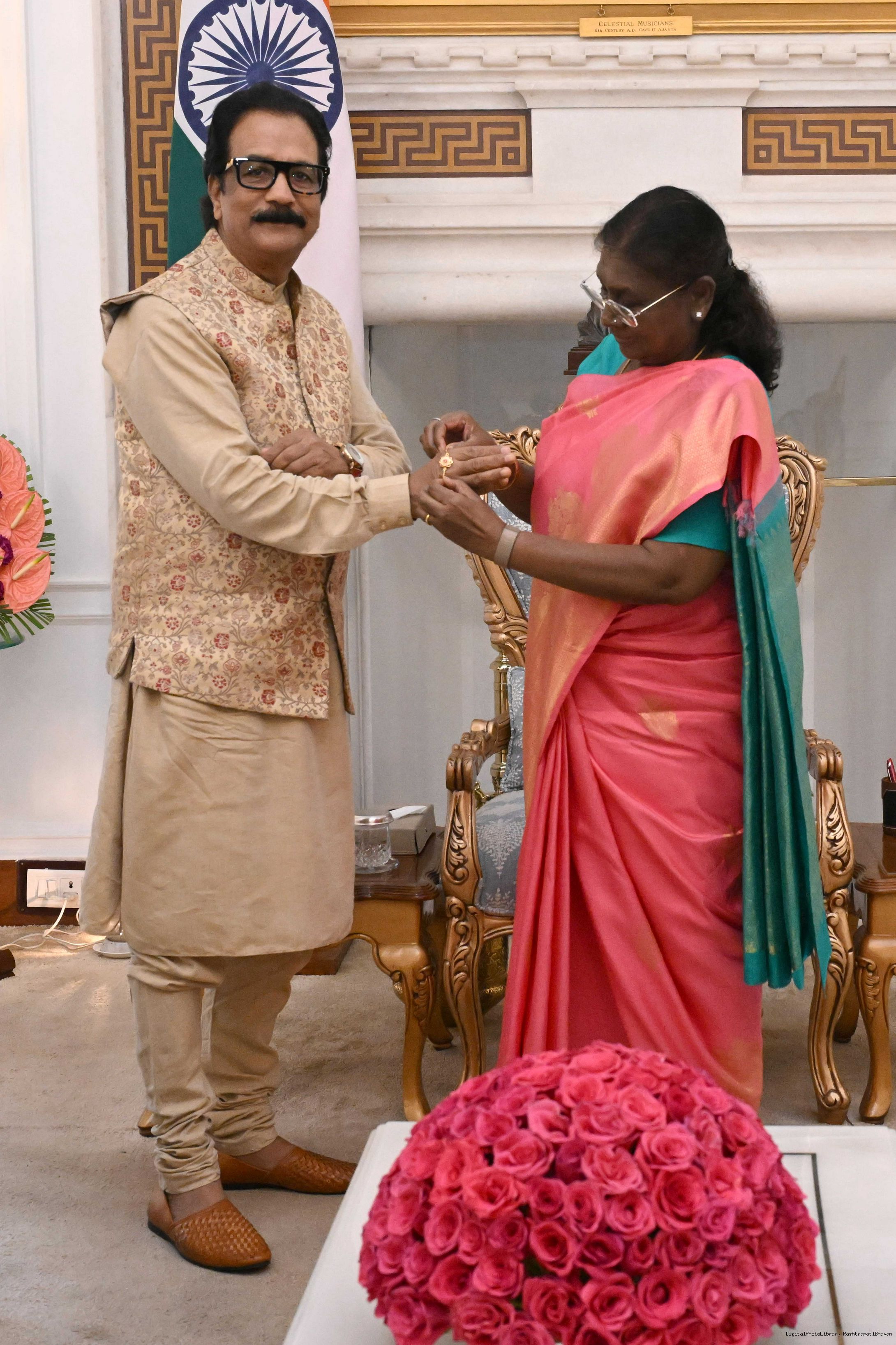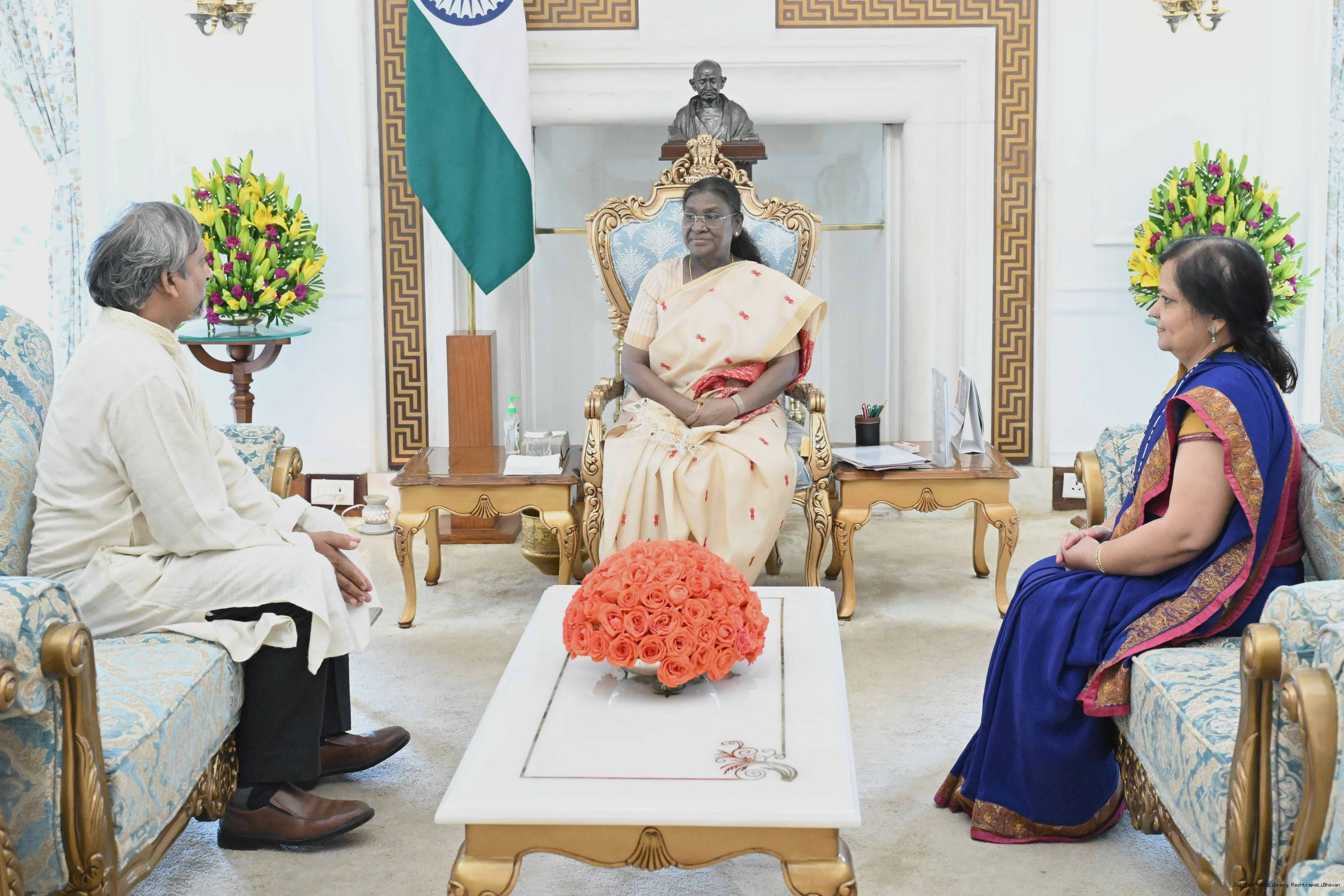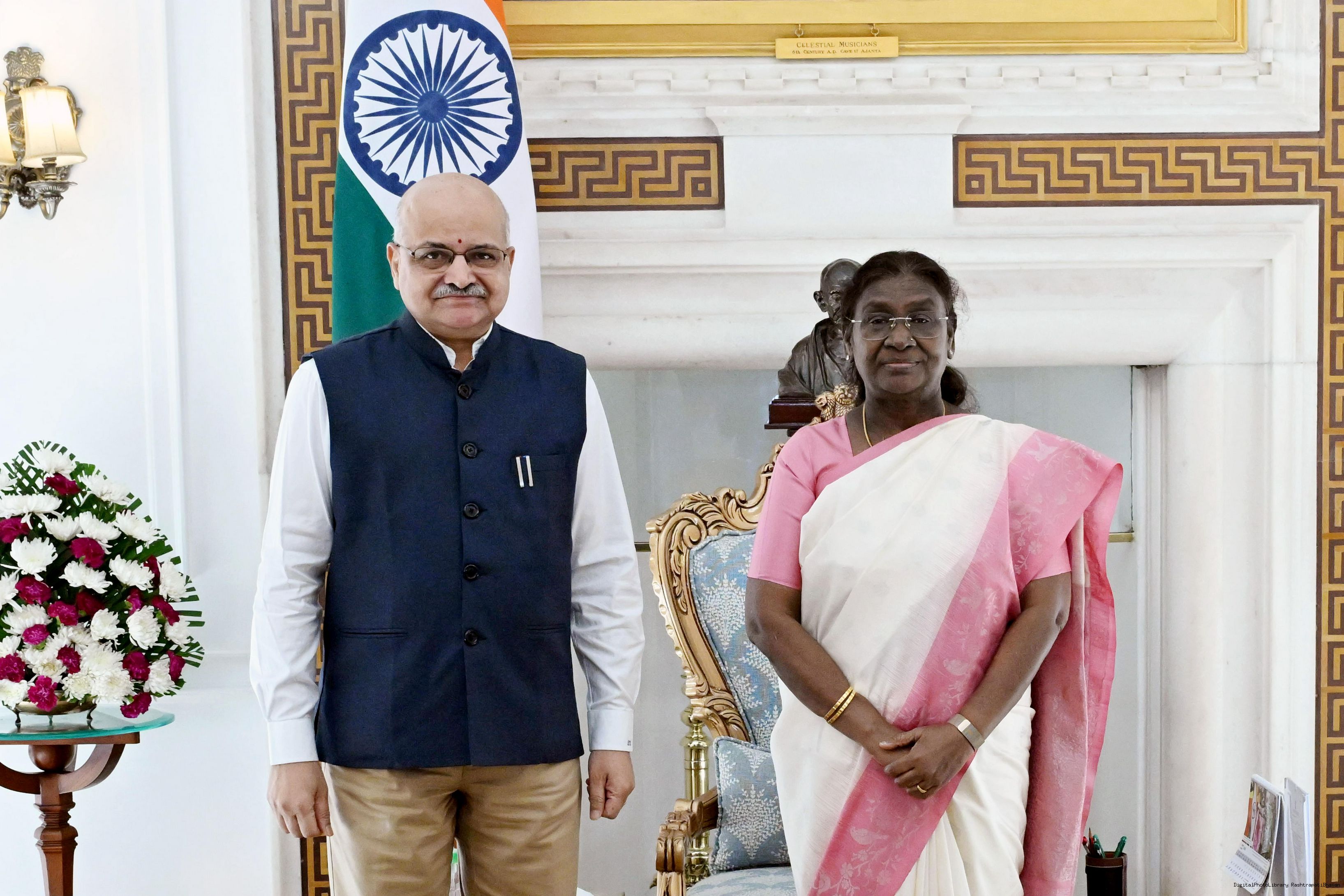 Shri Neeraj Gupta, President, Delhi Art Society along with Smt. Preeti Gupta meeting with the President of India, Smt Droupadi Murmu at Rashtrapati Bhavan on August 13, 2025.