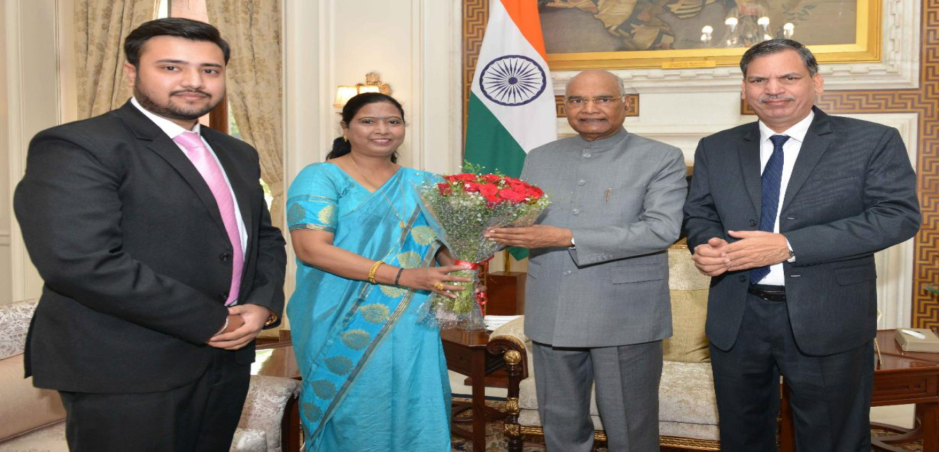 Smt. Gauri Abupuriya along with her family meeting with the President of India, Shri Ram Nath Kovind, at Rashtrapati Bhavan on November 15, 2019.