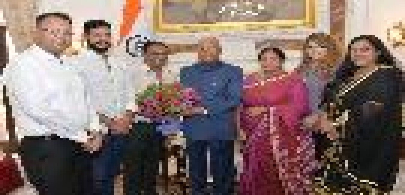 Shri Naresh Bharti, s/o late Shri Kalka Dass (ex-MP) along with his family meeting with the President of India, Shri Ram Nath Kovind, at Rashtrapati Bhavan on July 08, 2019.