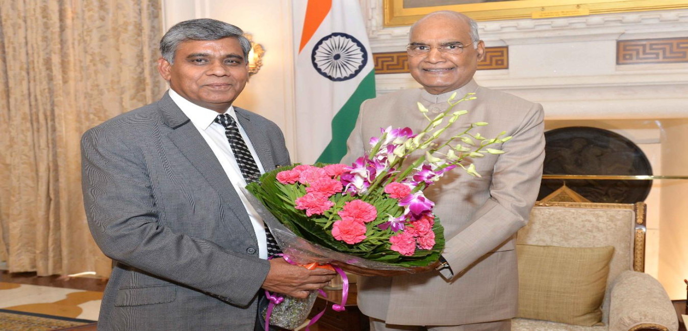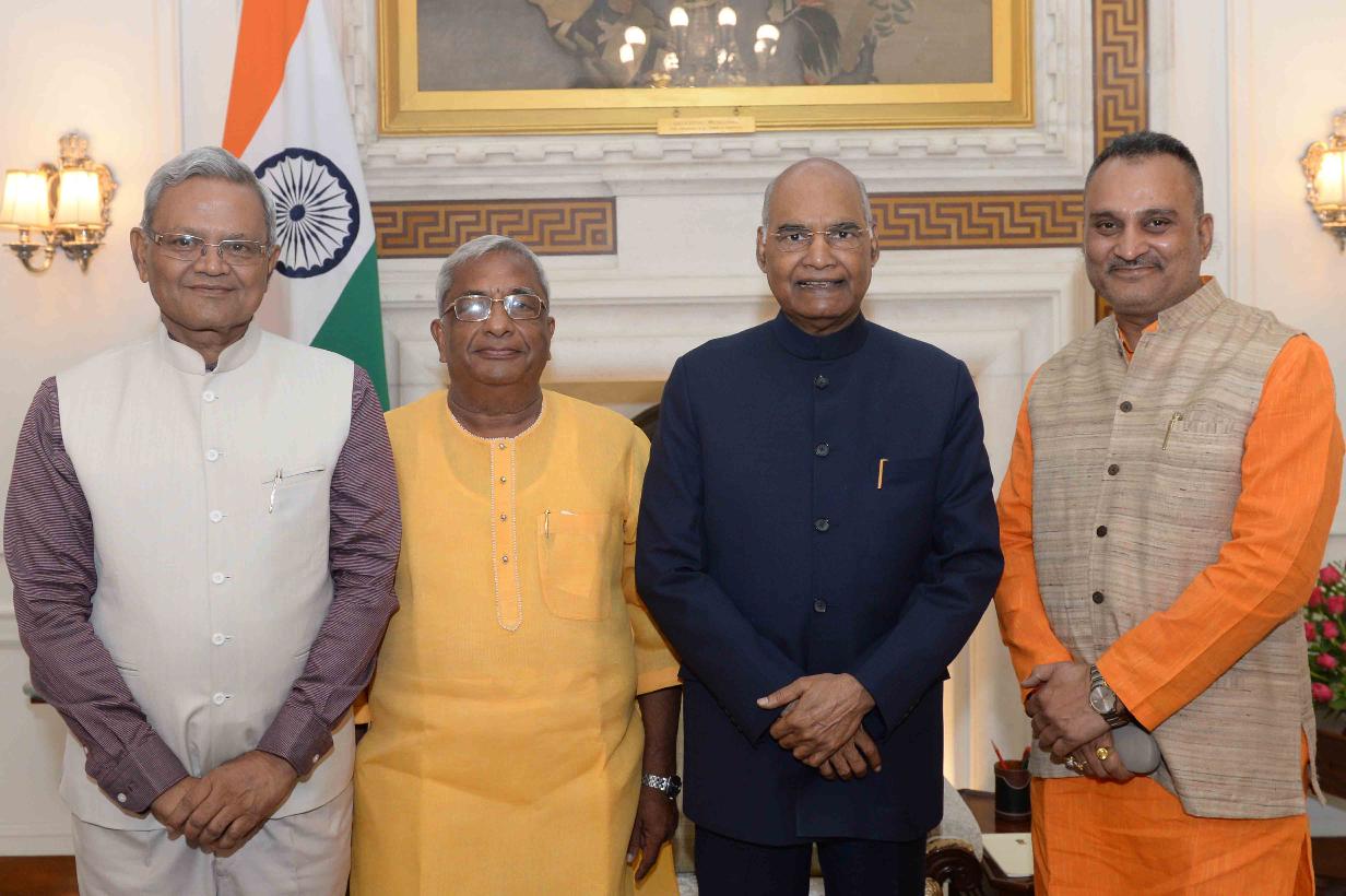 Shri Madhu Sudan Goel with others meeting with the President of India, Shri Ram Nath Kovind, at Rashtrapati Bhavan on July 16, 2019.