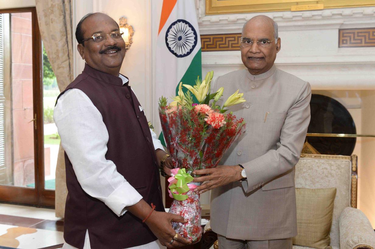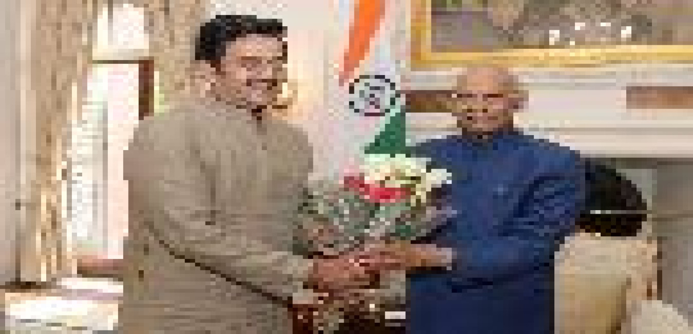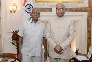 Shri Kamalbhan Singh Marabi, Ex. MP (Lok Sabha) along with Shri Ram Sewak Paikra, former Home Minister of Chhattisgarh meeting with the President of India, Shri Ram Nath Kovind, at Rashtrapati Bhavan on July 18, 2019.
