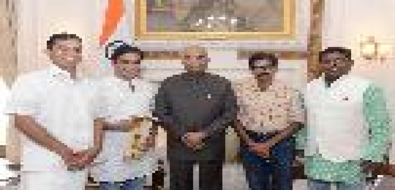 Shri Hibi Eden, MP ( Lok Sabha) with others meeting with the President of India, Shri Ram Nath Kovind, at Rashtrapati Bhavan on July 03, 2019.