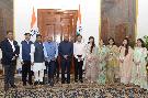 Shri Jai Prakash Agarwal, Chairman, Surya Foundation, New Delhi along with his family meeting with the President of India, Shri Ram Nath Kovind, at Rashtrapati Bhavan on July 16, 2019.