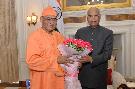 Swami Nikhileshwarananda, Adhyaksha, Shri Ramakrishna Ashrama, Rajkot meeting with the President of India, Shri Ram Nath Kovind, at Rashtrapati Bhavan on May 21, 2019.
