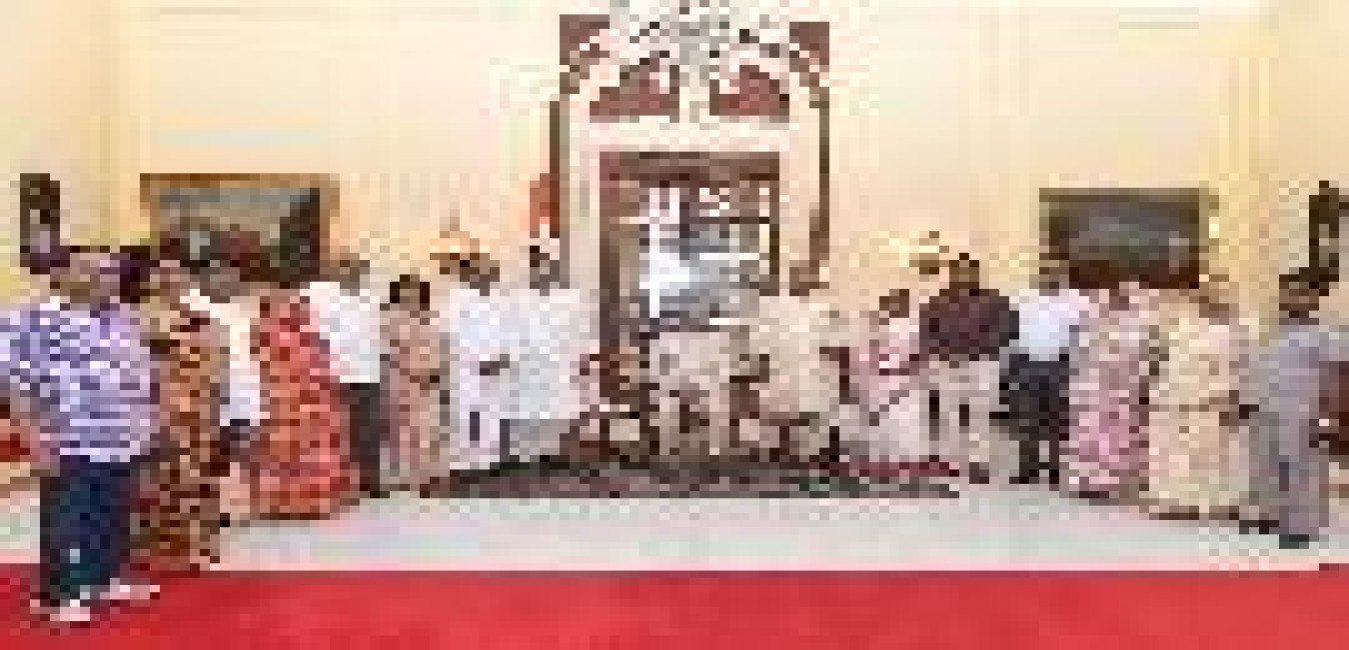 Shri Veereshwar Dwivedi, Vishwa Hindu Parishad, New Delhi with others meeting with the President of India, Shri Ram Nath Kovind, at Rashtrapati Bhavan on April 29, 2019.
