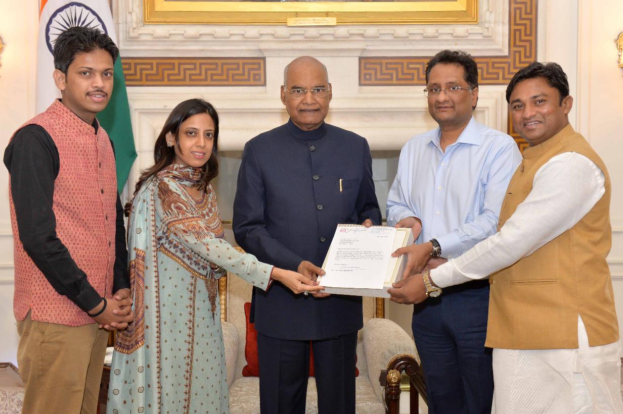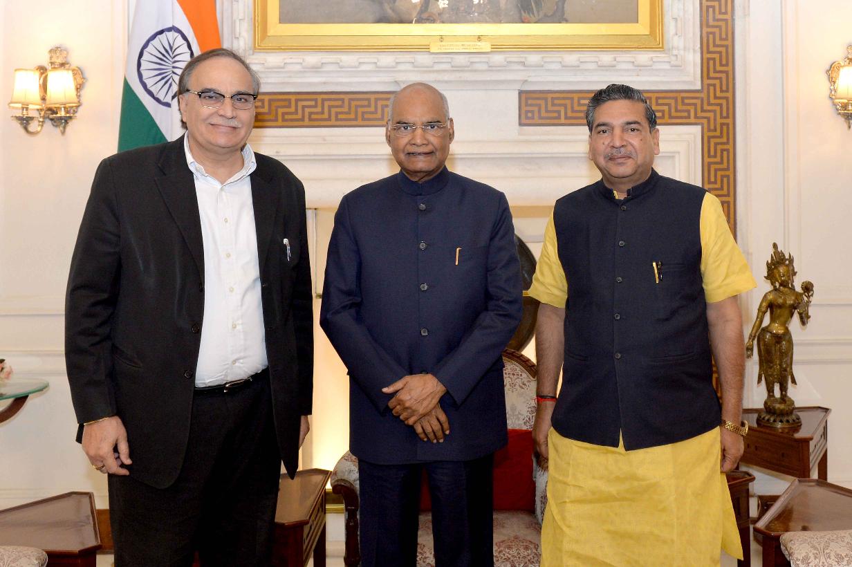 Shri Mukesh Tripathi, Vice Chairman Surya Foundation New Delhi with others meeting with the President of India, Shri Ram Nath Kovind, at Rashtrapati Bhavan on May 10, 2019.