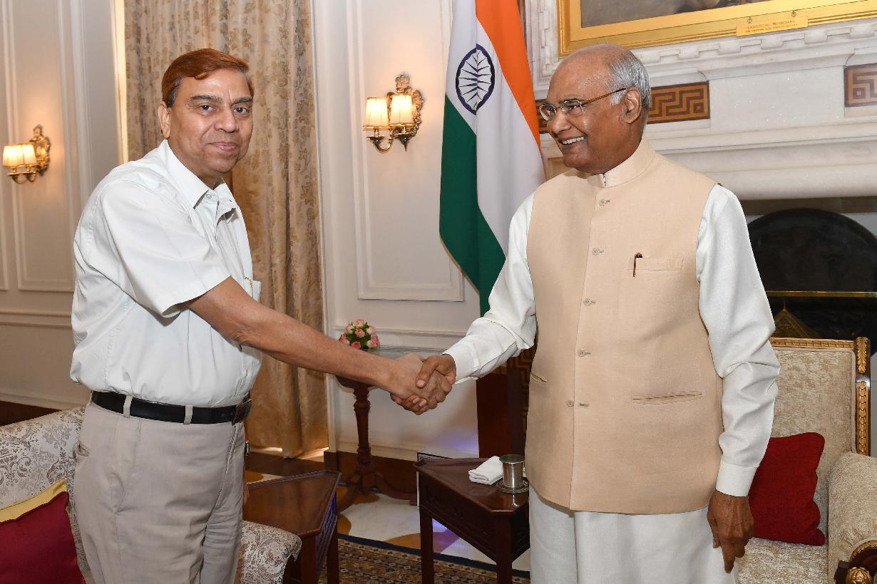 Shri Ajay Kumar Singh meeting with the President of India, Shri Ram Nath Kovind, at Rashtrapati Bhavan on April 25, 2019.