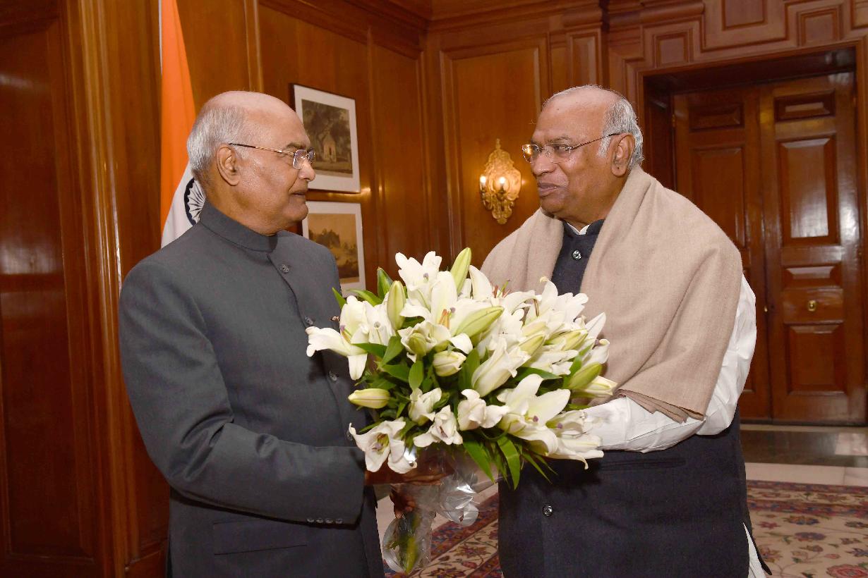 Shri Mallikarjun Kharge, Chairperson, Public Accounts Committee and Leader of Congress Party along with his family members meeting with President of India, Shri Ram Nath Kovind, at Rashtrapati Bhavan on February 01, 2019.
