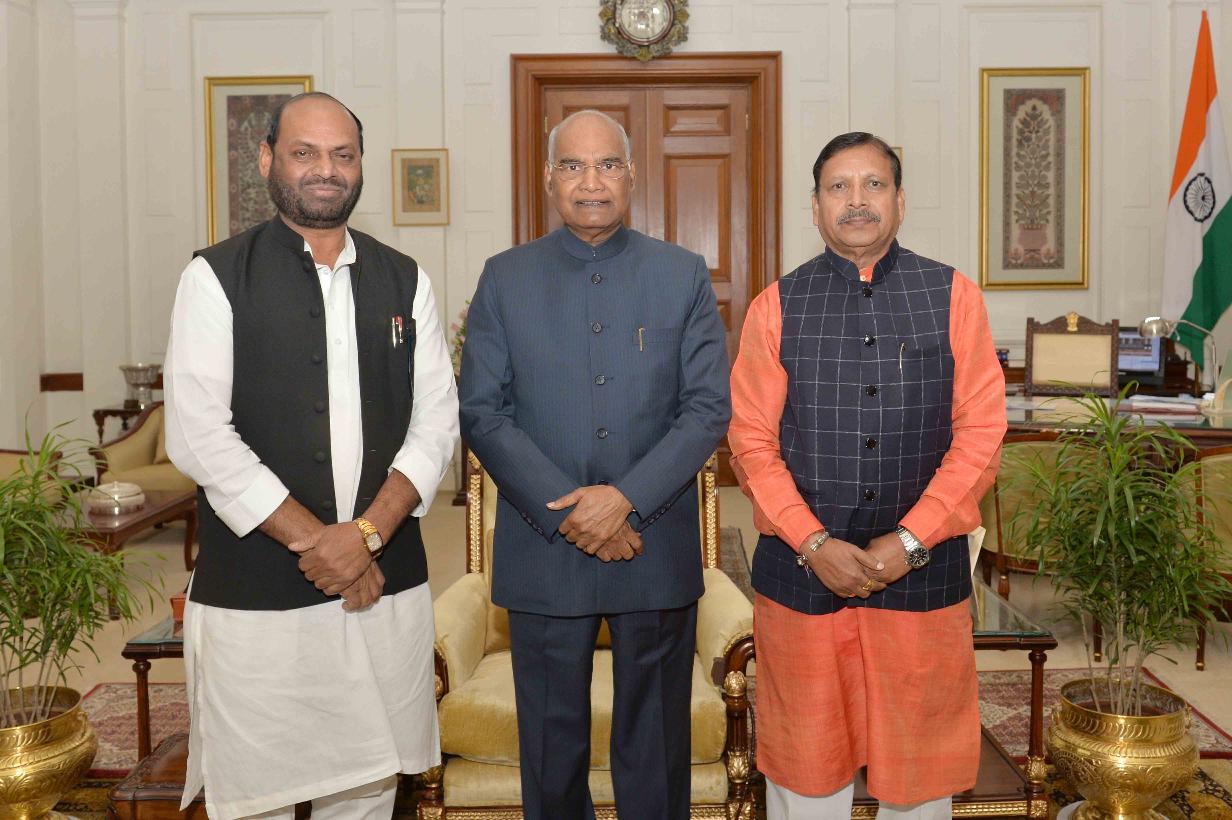 Shri Ramsinh Rathwa, MP (Lok Sabha) along with Shri Naranbhai J. Rathwa, MP (Rajya Sabha) meeting with the President of India, Shri Ram Nath Kovind, at Rashtrapati Bhavan on February 05, 2019.