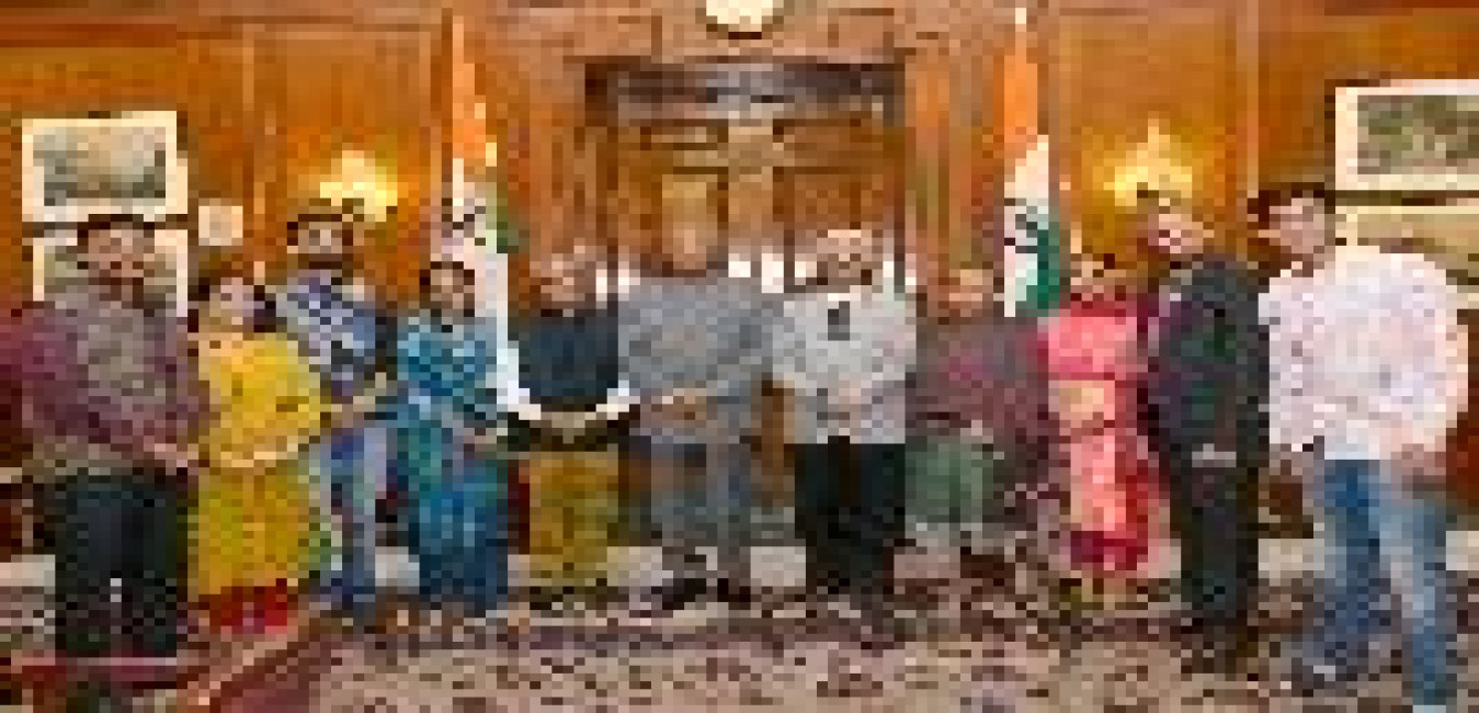 Smt. Usha Kumar, General Secretary, Anjuman Sair-e-Gul Faroshan with others presenting a Pankha of Phool Waalon Ki Sair to the President of India, Shri Ram Nath Kovind, at Rashtrapati Bhavan on November 02, 2018.