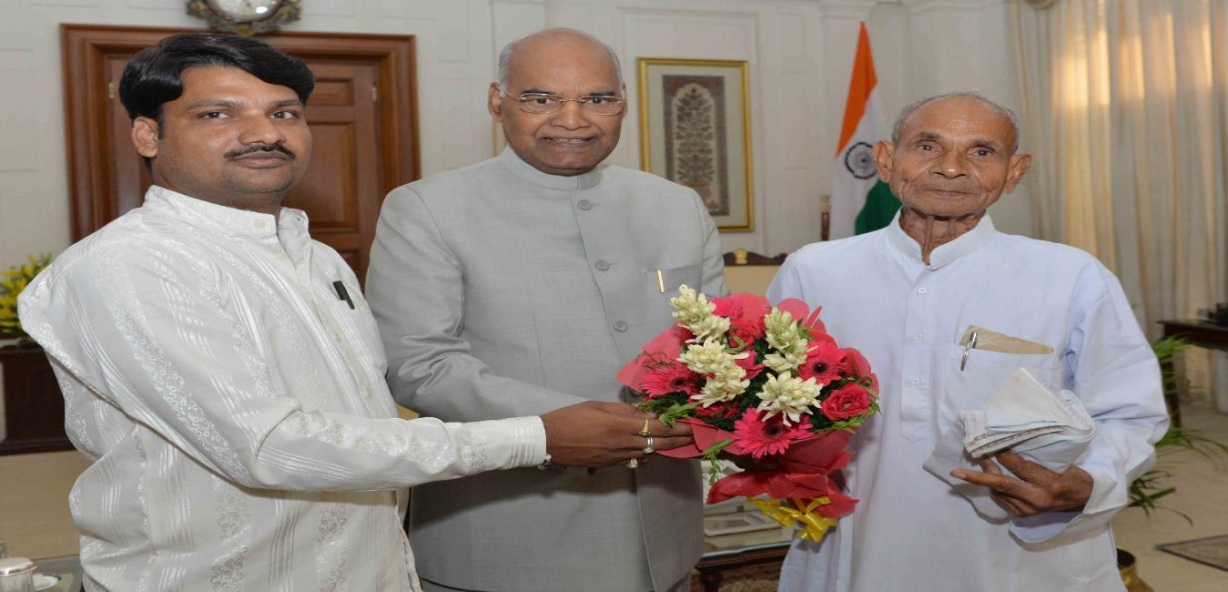Shri Suryabali Kamalvansi along with his nephew Shri Amit Singh Bharti meeting with the President of India, Shri Ram Nath Kovind, at Rashtrapati Bhavan on September 14, 2018.