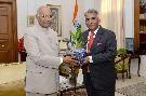 Shri Vijaypal Singh Tomar, MP (RS) alongwith Shri Pratap Singh Chauhan of Jiva, Faridabad meeting with the President of India, Shri Ram Nath Kovind, at Rashtrapati Bhavan on September 13, 2018.
