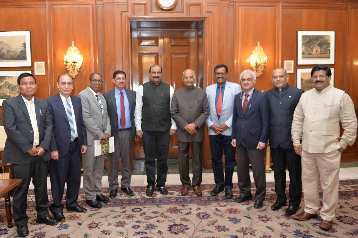 Shri Anil Khaitan, President alongwith officer bearers of PHD Chamber of Commerce & Industry and a team of women enterpreneurs meeting with the President of India, Shri Ram Nath Kovind, at Rashtrapati Bhavan on September 18, 2018.