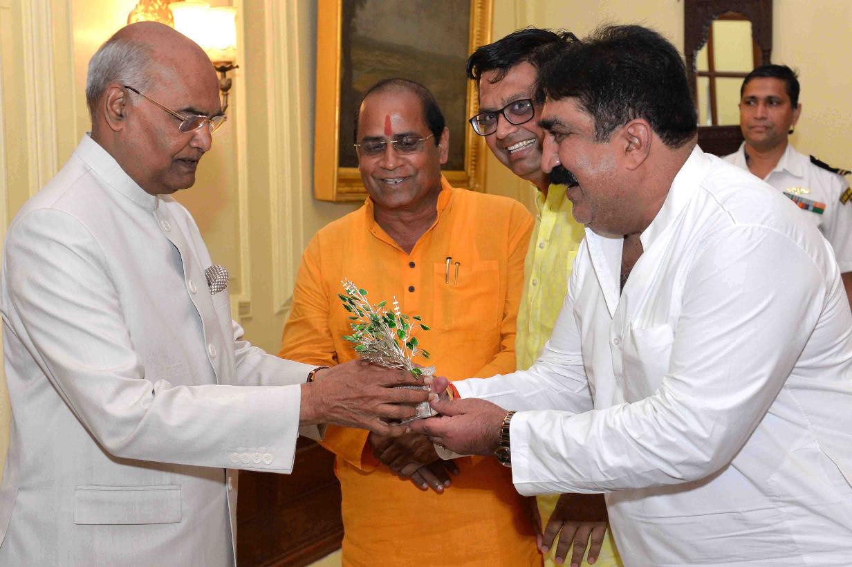 Shri Moolchand Meena, Ex-MP (RS) with others meeting with the President of India, Shri Ram Nath Kovind, at Rashtrapati Bhavan on July 10, 2018.