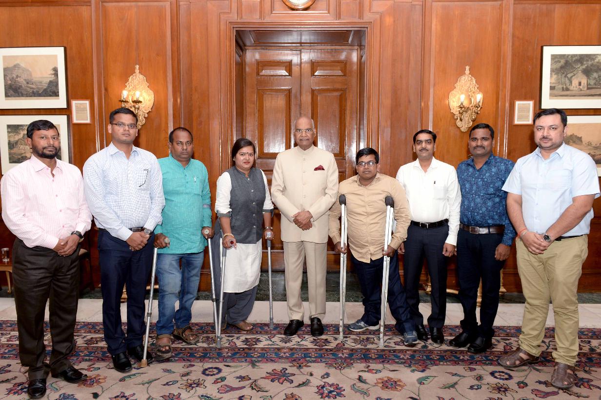 Shri Deepak Kumar, Secretary with others from Viklang Adhikar Manch, Patna, Bihar meeting with the President of India, Shri Ram Nath Kovind, at Rashtrapati Bhavan on July 21, 2018.