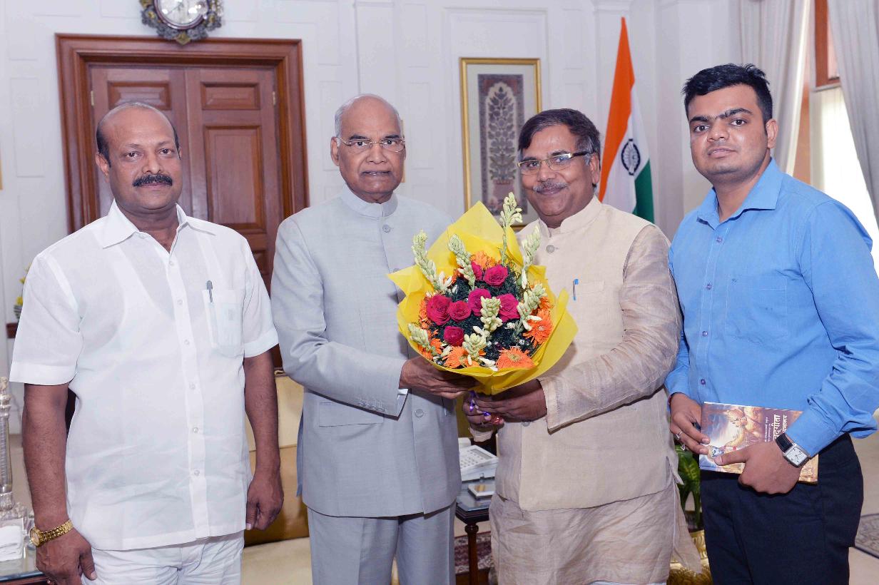 Shri Veereshwar Dwivedi meeting with the President of India, Shri Ram Nath Kovind, at Rashtrapati Bhavan on July 11, 2018.