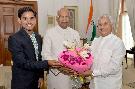Shri Pramod Kumar, Minister of Tourism, Bihar Govt. along with Dr. Vishwanath Karad, President, MIT World Peace University, Pune and others meeting with the President of India, Shri Ram Nath Kovind, at Rashtrapati Bhavan on July 05, 2018.